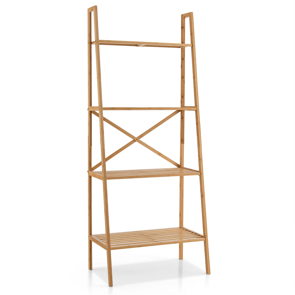 58 Inch 4-Tier Bamboo Ladder Bookshelf-Natural
