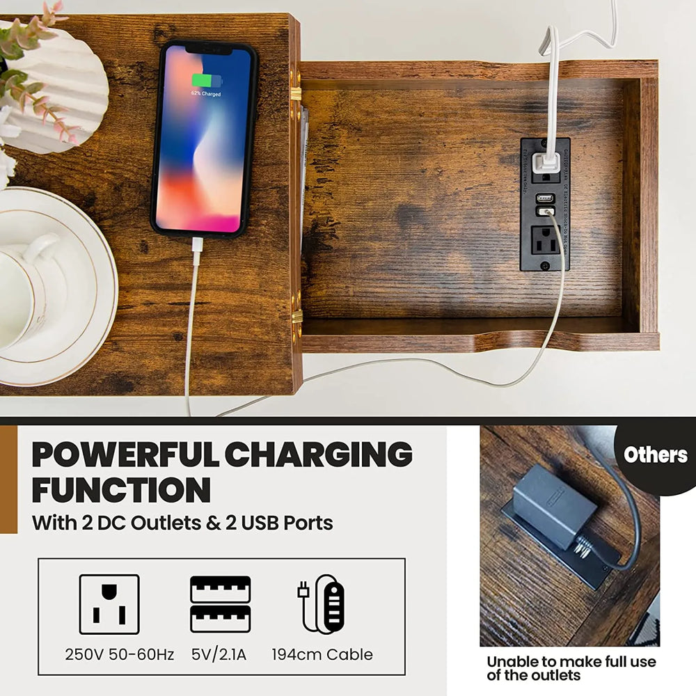 - Built-in charging station with 2 x 250V outlets and 2 x 5V/2.1A USB ports for convenient device charging beside your sofa or bed.