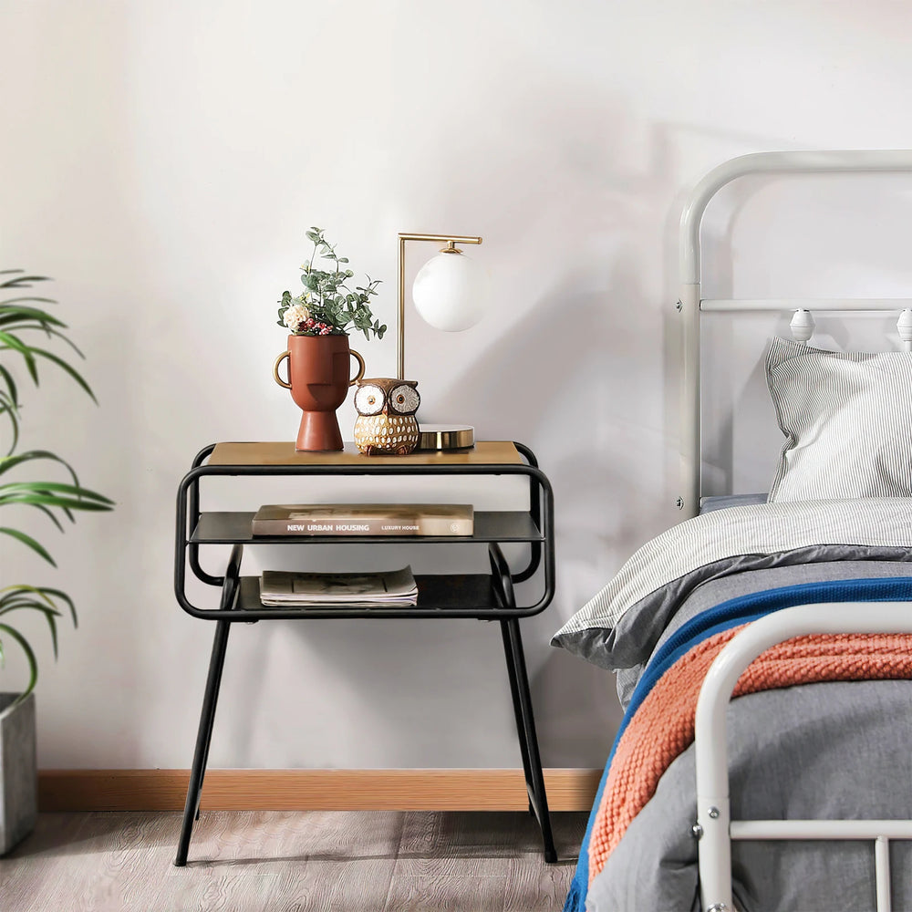 Color: Coffee Material: Steel, MDF Overall Dimension: 20" x 16" x 22" (L x W x H) Load Capacity of Tabletop: 44 lbs Load Capacity of Each Shelf: 22 lbs Net Weight: 12.5 lbs Package Includes: 1 x Side Table 1 x User Guide