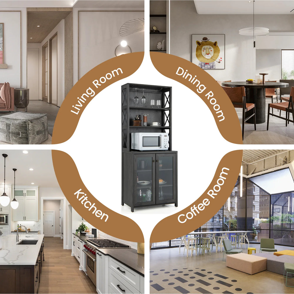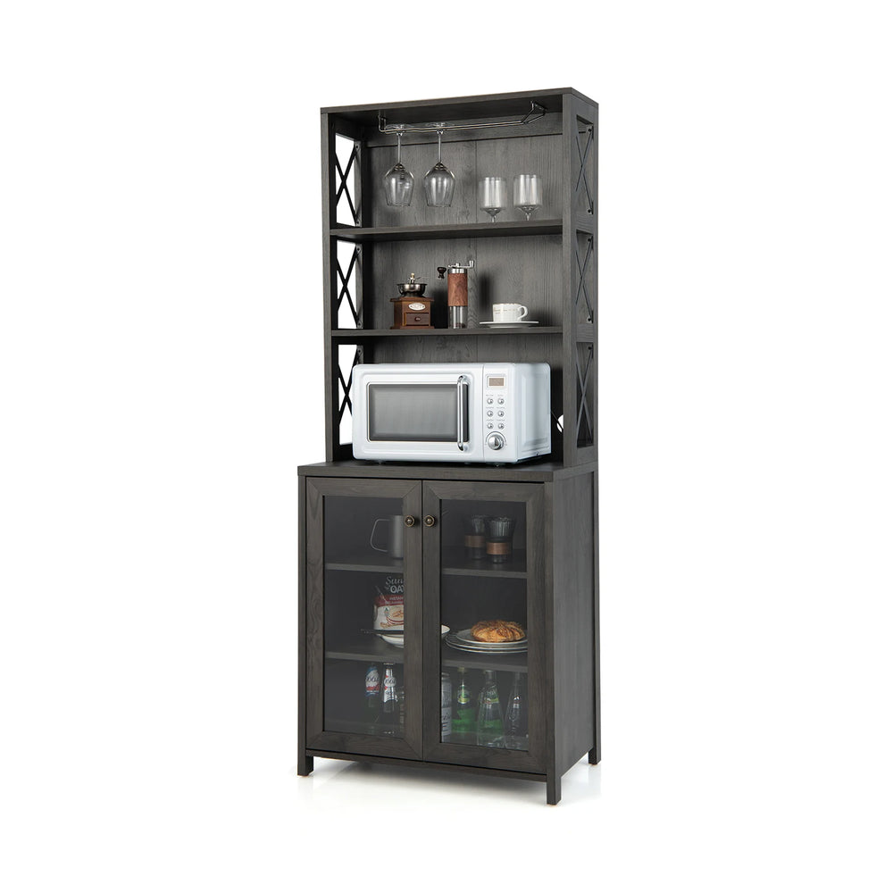 Tall Freestanding Bar Cabinet Buffet with Glass Holder and Adjustable Shelf-Gray