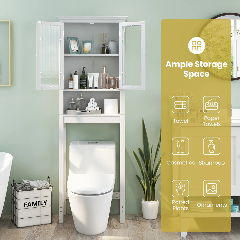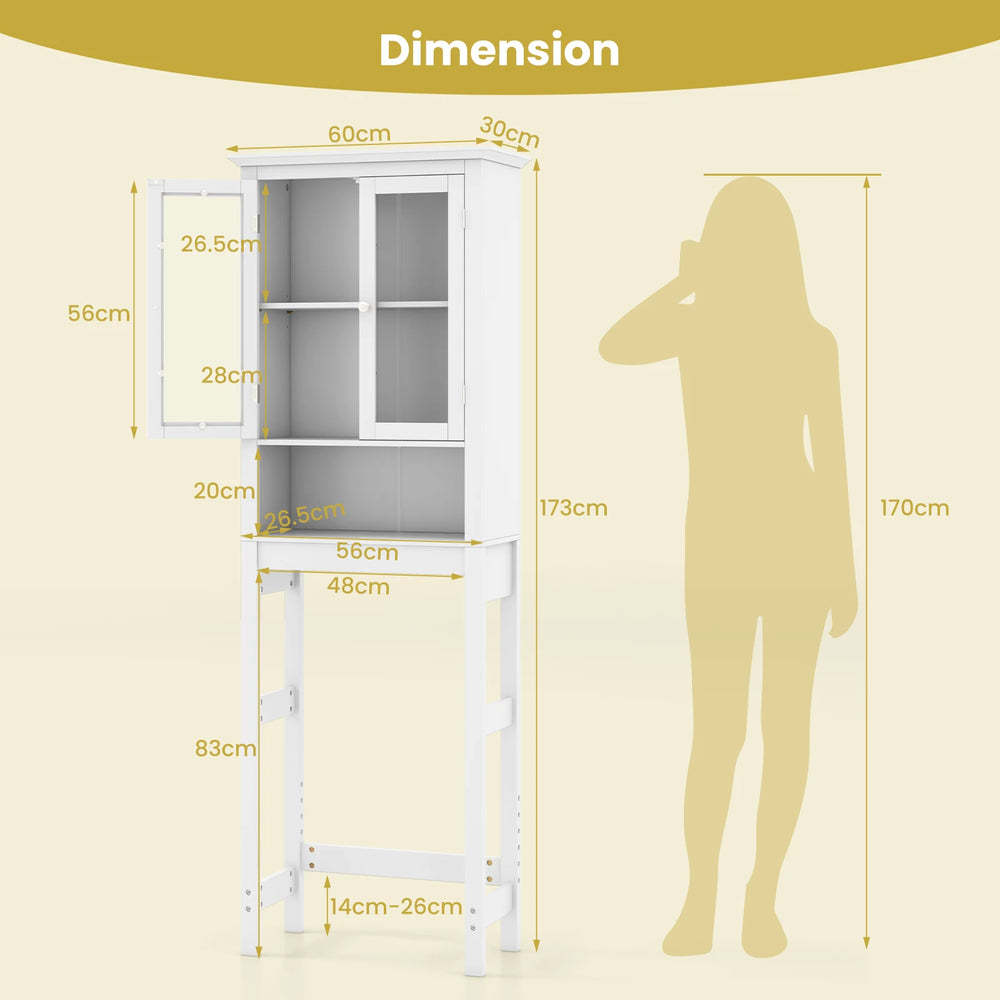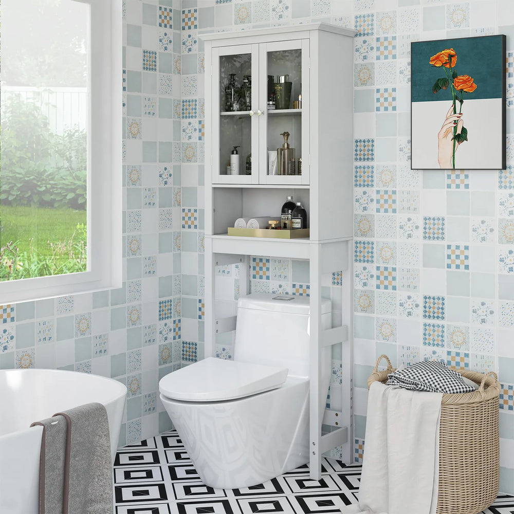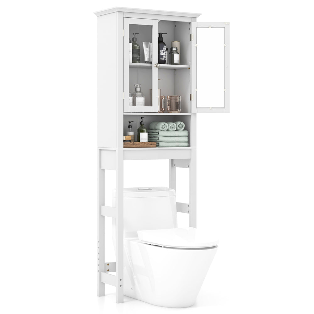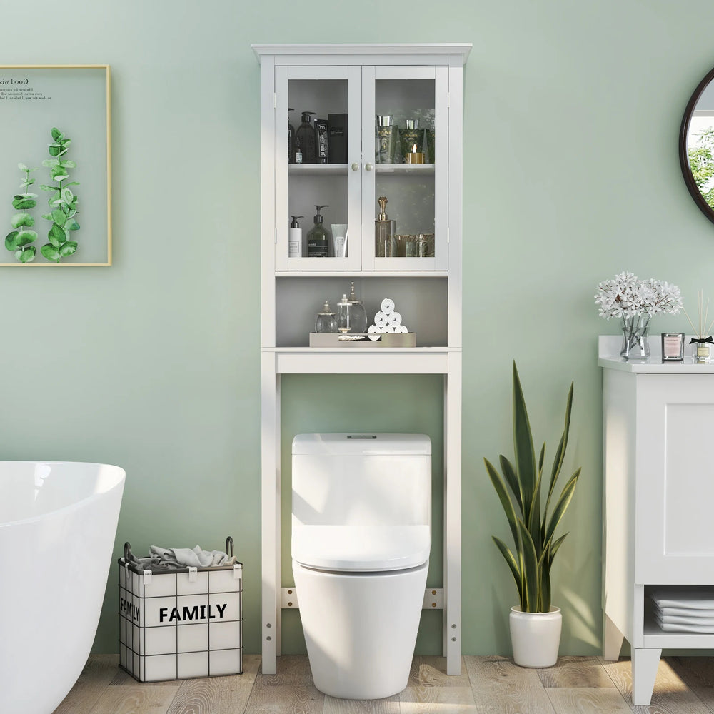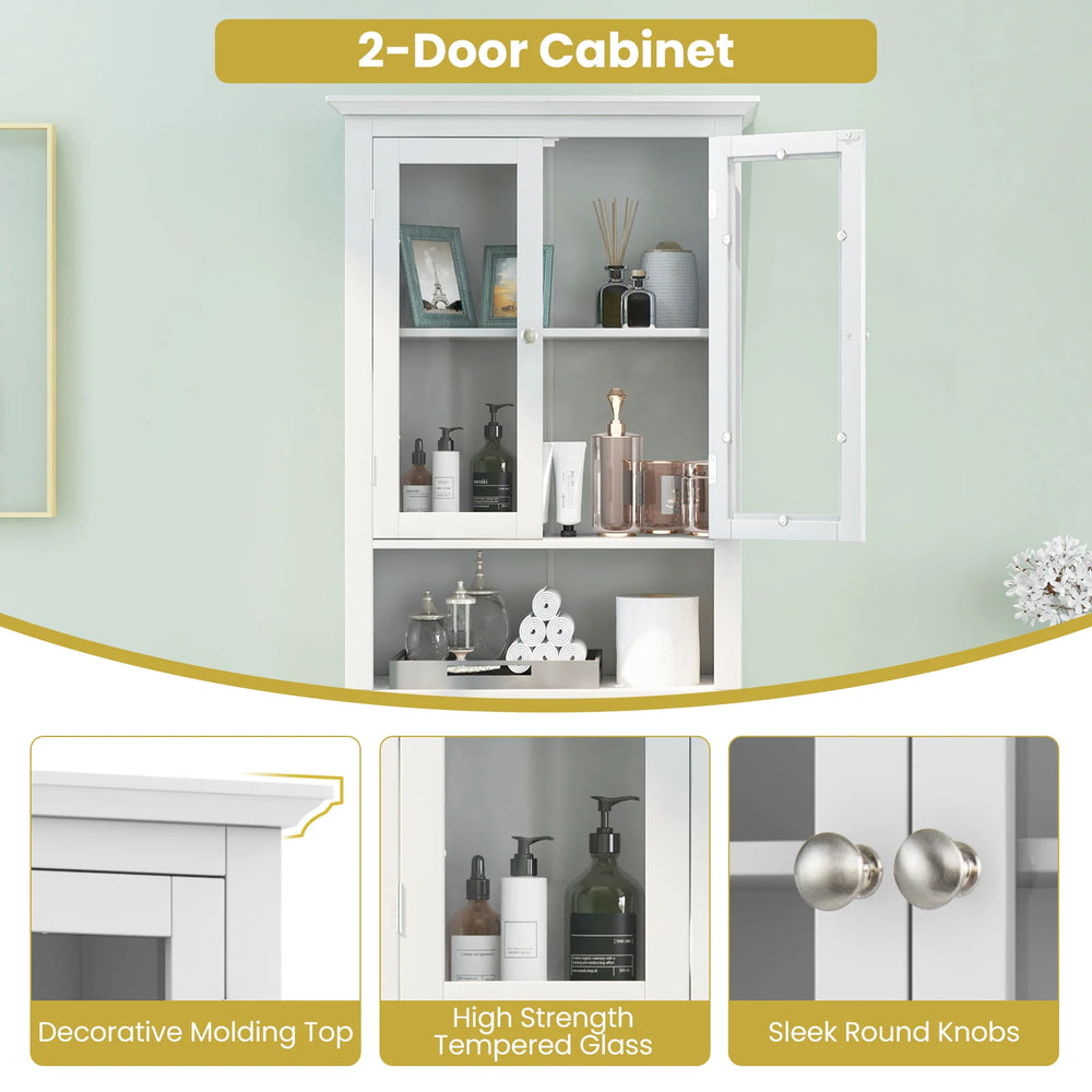 Over the Toilet Storage Cabinet with Double Tempered Glass Doors