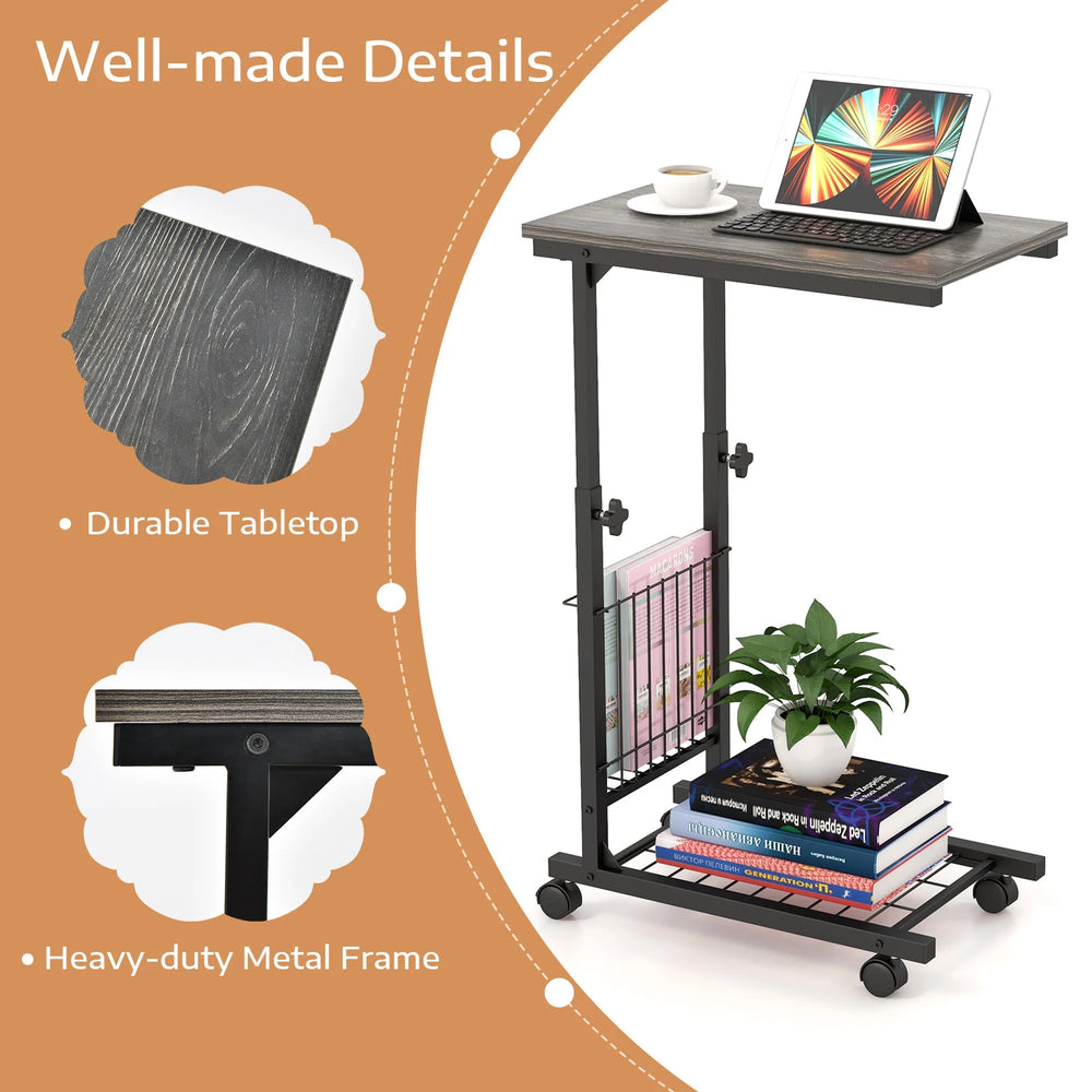 C-shape Adjustable End Table with Storage Basket-Grey is backordered and will ship as soon as it is back in stock.