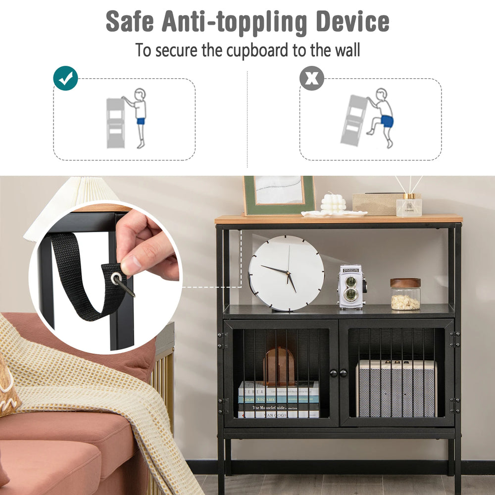 Looking for a storage cabinet to keep the room tidy? This kitchen sideboard will be a good choice! Featuring open shelves and enclosed cabinets, the buffet cabinet serves well as a display unit and a storage organizer, being functional in the kitchen, dining room, living room, entryway, etc. Meanwhile, the heavy-duty metal frame ensures reliable support and enables the storage cabinet to hold a lot. For example, the tabletop is spacious and strong enough to accommodate small kitchen appliances, such as a microwave oven. And for maximum safety, the bar cabinet is equipped with an anti-toppling kit to prevent falling accidents. With smooth waterproof surface, the daily maintenance is quite easy. Besides, it's also a breeze to clean the floor underneath the cabinet, since there is 18 cm space for a vacuum robot. Bullet Point: One-for-all Storage Organizer: The buffet sideboard features a spacious tabletop, an open shelf and a 2-door cabinet, offering generous storage space for different items. The open space is practical for kitchen appliances, like a microwave or coffee machine, while the enclosed cabinet holds large amounts of cutlery, spice, snacks or beverage. Safe with Anti-toppling Device: The kitchen storage cabinet stands 90 cm tall. And in case of falling accidents, it is fitted with anti-toppling device for extra security. With the straps and expansion bolts, you can mount the buffet cabinet to the wall, thus preventing it from tipping over. Sturdy Construction & Easy Cleaning: Made of heavy-duty rustproof metal material, the coffee bar table can hold a considerable amount of weight (up to 109 kg in total) and serve you well for a long period of time. Besides, the tabletop is made of high-quality material, which features easy-to-clean waterproof surface for simple maintenance. Multiple Applicable Scenarios: In addition to being used as a buffet sideboard, this multifunctional unit with ample storage capacity and sturdy construction is also suitable for other purposes. For example, you can make it a coffee station to enjoy a delicious cup of coffee during the leisure time, or use it as an entryway table to display ornaments. Easy Assembly & Thoughtful Design: Each step of assembly is clearly illustrated in the user manual. And you can quickly recognize the parts with labels on them. You may also find other user-friendly features, such as the convenient knobs, the magnetic door catch and the non-scratch foot pads. Features: Integrates open & enclosed storage options to meet different needs Multifunctional tabletop is suitable for displaying ornaments or holding essentials Robust metal construction provides a 109 kg max. weight capacity Comes with anti-toppling device to avoid tipping over 17 cm clearance between floor and cabinet allows easy cleaning Fitted with metal fence doors for good ventilation condition Modern & stylish cabinet fits kitchen, dining room and living room Specifications: Color: Natural + Black Material: Metal, MDF Overall Dimensions:80 x 35 x 90 cm (L x W x H) Clearance Between Tabletop & Cabinet:27.5 cm Inner Dimensions of Cabinet:37 x 31.5 x 35 cm (L x W x H) Clearance Between Cabinet & Floor:18.5 cm Max. Weight Limit: 110 kg Net Weight: 18.5 kg Package Includes: 1 x Buffet Sideboard 1 x Instruction
