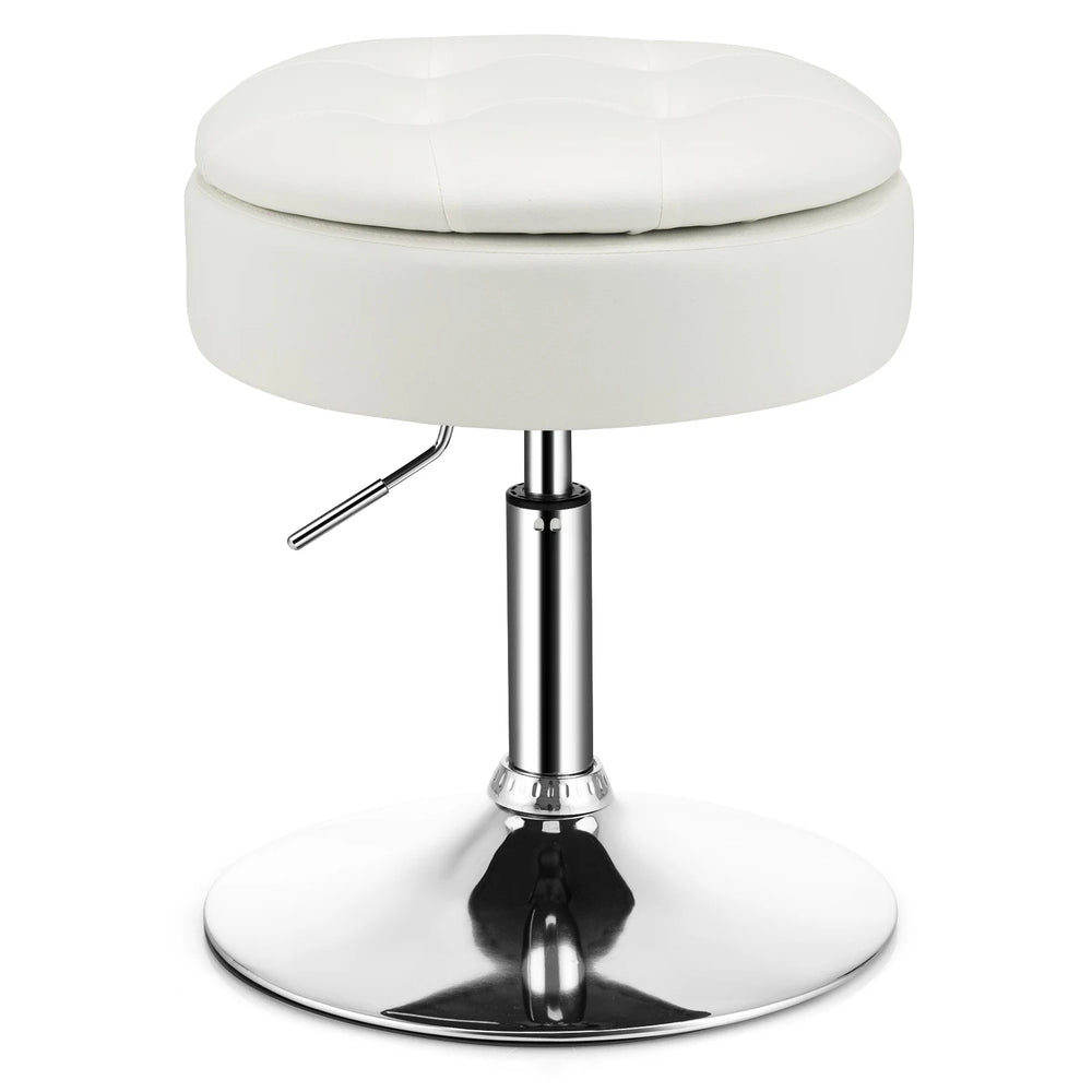 Take this chic and comfortable vanity stool home to complement your bedroom! The height-adjustable stool easily matches desks of different heights. And with the convenient control lever, its easy to operate and adjust the height! Whats more, the soft-padded seat will greatly improve the seating comfort. Besides, the high-end PU leather and tufted design make the stool look of great value. On the other hand, the seat lid is removable and theres a storage compartment to bring you some convenience. Flip the lid over, the plywood top can be used as a tray for afternoon tea! In addition to the above advantages, the upholstered storage ottoman also boasts it superior stability thanks to the stable plated chassis, which is enhanced with non-slip rubber pads for floor protection. Bullet Point: Height-adjustable Swivel Stool: Equipped with a premium pneumatic lifting mechanism, the round counter height stool can go up and down smoothly as you pull up the underneath lever. And the height range is 50cm-66cm, which means it is compatible with different desks and counters. Meanwhile, the flexible vanity seat can turn around 360 degrees. Tray Top & Hidden Storage Space: Remove the lid of the seat cushion, you will find there is a plywood tray on the other side and a 9cm deep hidden storage compartment underneath the lid. Thus, in addition to offering an extra seat, the swivel stool can also serve as an end table for cups and snacks, or a storage ottoman to keep odds and ends. Comfortable Upholstered Seat: To give optimal comfort and a better experience, the upholstered ottoman is covered with waterproof PU leather and is padded with a high-density sponge. Meanwhile, the tufted surface also adds to the deluxe style and makes the seat cushion more comfortable. Stable-Plated Chassis with Rubber Pads: Equipped with a wide-plated chassis, the upholstered vanity stool can keep a good balance and support a good weight of 150kg. What's more, the round chassis is fitted with a non-slip & anti-scratch rubber ring, which is friendly to the floor. Easy Assembly & Wide Application: Comes with illustrated instructions and complete accessories, the assembly of the adjustable bar stool won't be a big problem. Besides, the versatile stool is suitable for various scenarios, including the bedroom, living room, dining room, and bar. Features: The seat can be adjusted from 50 cm to 66 cm according to your needs 360 swivel seat allows you to turn around with ease Premium PU leather and high-density sponge bring a comfy feeling The removable lid design contributes to versatile usage Equipped with a plywood tray for holding drinks and snacks The interior compartment offers some hidden storage space A wide and stable base keeps the stool in good balance Non-slip rubber pads enhance the overall stability Specifications: Colour: Black/Pink/White Material: Steel, Plywood, PU, Sponge Overall Dimensions: 41.5 cm x 50 cm-66 cm (Dia. x H) Seat Dimensions: 40 cm x 15 cm (Dia. x H) Weight Capacity: 150 kg Net Weight: 7 kg Package Includes: 1 x Vanity Stool 1 x Instruction