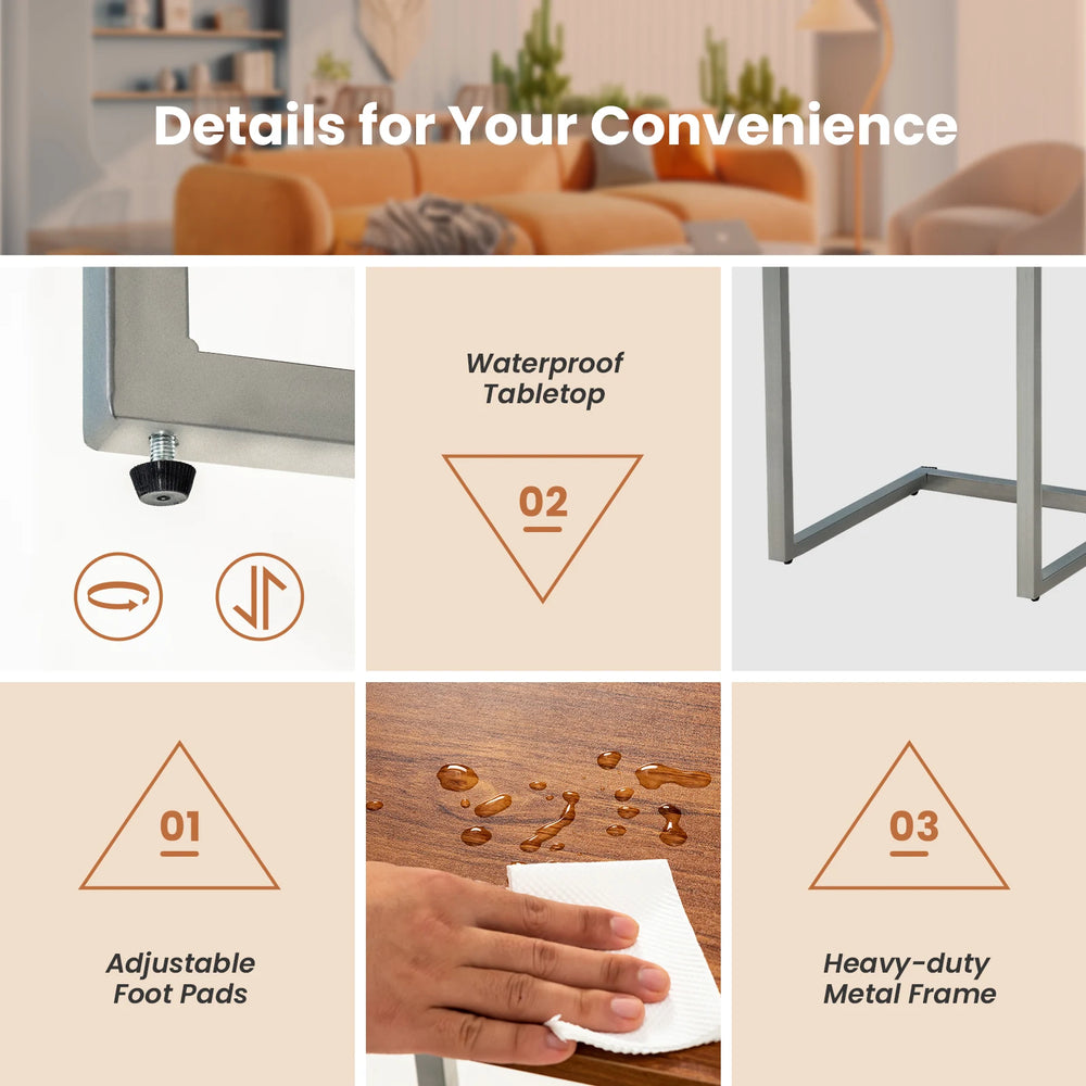 This set of tables can bring your coffee-time experience to a higher level. It features heavy-load steel construction and durable MDF boards with wooden-texture surface. Its unique design makes it looks very modern, also easy to save place. Take it with wonderful experience home! Bullet Point: Stackable Nesting Coffee Table Set: Our vintage nesting coffee table set with 3 different height chair is designed to save space whiling meet various using requirement. When not in use, it can be nested or stacked together in compact space. Lightweight also make it easy storage and carrying. Selected Material & Solid Structure: Made of premium P2 grade of MDF, this accent side table set features environmental protection and quality service life. Thickened steel frame nicely provides strong stability and durability rather than easy wobble. 4 Footpads greatly protects floor from scratching or damaging. Versatile End Table Set: Set of 3 rustic end table set can be used separately or place together as you like. Compact size makes it perfect for living room, bedroom, kitchen, office space. It also can be as coffee table, cocktail table, tea table, end table, side table. Easy & Vintage Style: With clear lines and vintage style, our side table set adds retro industry charm to your living space while perfectly blending into any decor. You can put drinks, snacks, magazines or plants on the tabletop with wood texture. Easy To Clean & Assemble: The smooth and waterproof table top is easy to wipe dust with wet or dry rag. Come with a clear and brief instruction, it has straight forward illustrations and descriptions. Each screw and pin has its own code to take you little time and energy. Features: 3 kinds of height levels meet for various demands, cost-effective and convenient Stacking design makes best use of space, good for storage and carrying Environment-friendly P2 grade of MDF board provides quality service life Reinforced steel with silver powder-coated steel, greatly durable and anti-rust Wildly applied as coffee table, cocktail table, tea table, end table, bedside table Perfect for office or living room, balcony, bedroom, etc. Wooden-texture surface, smooth and beautiful, easy to clean Simple & elegant design wonderfully integrate into any decor Easy to assemble followed by instruction Specifications: Color: As the picture shows Material: MDF + steel tube Net weight: 8.7kg Large size: 50 x 35 x 55cm Weight capacity for large one: 25kg Middle size: 44 x33 x 50cm Weight capacity for middle one: 20kg Small size: 38 x 31 x 45cm Weight capacity for small one: 15kg Package Included: 3 x Coffee Table