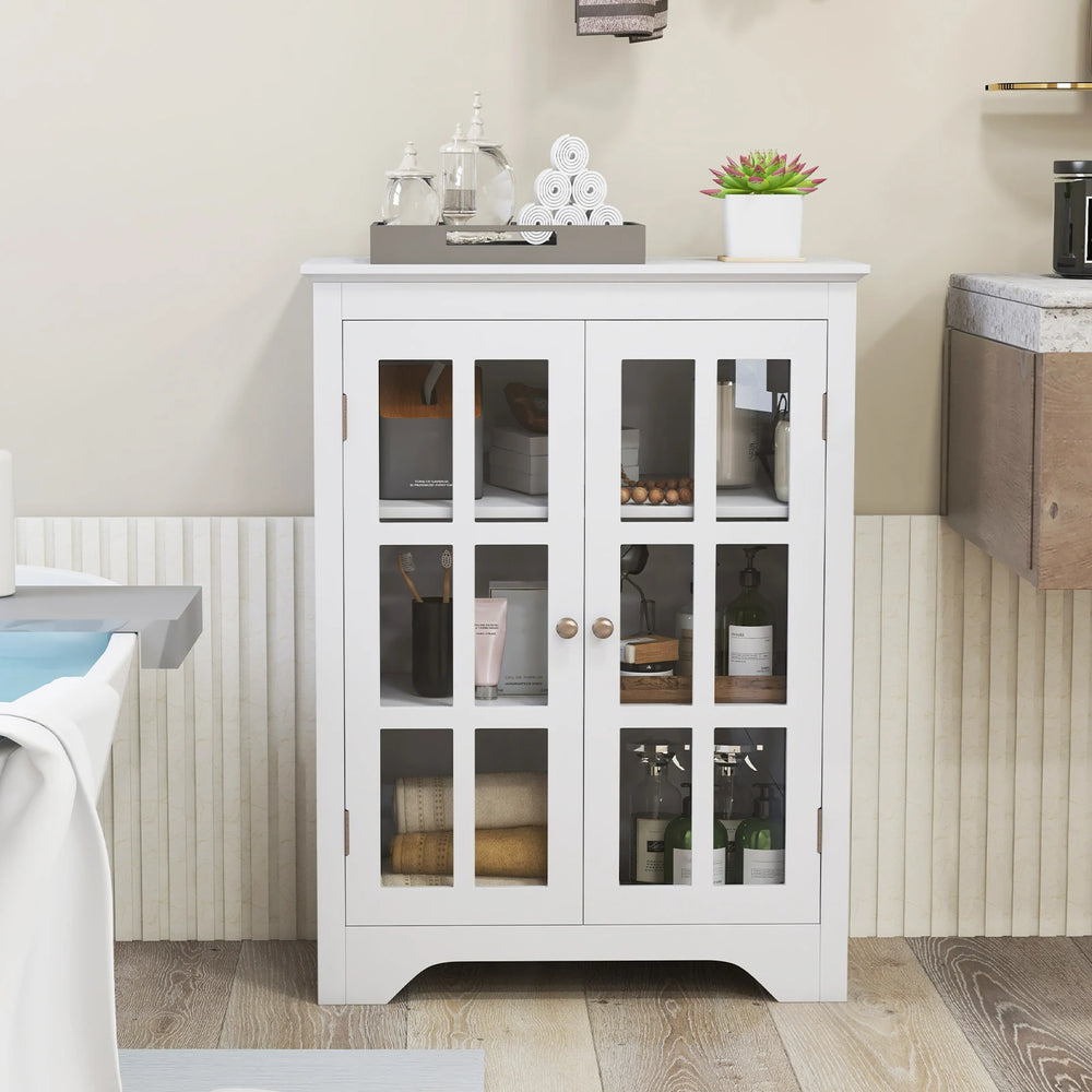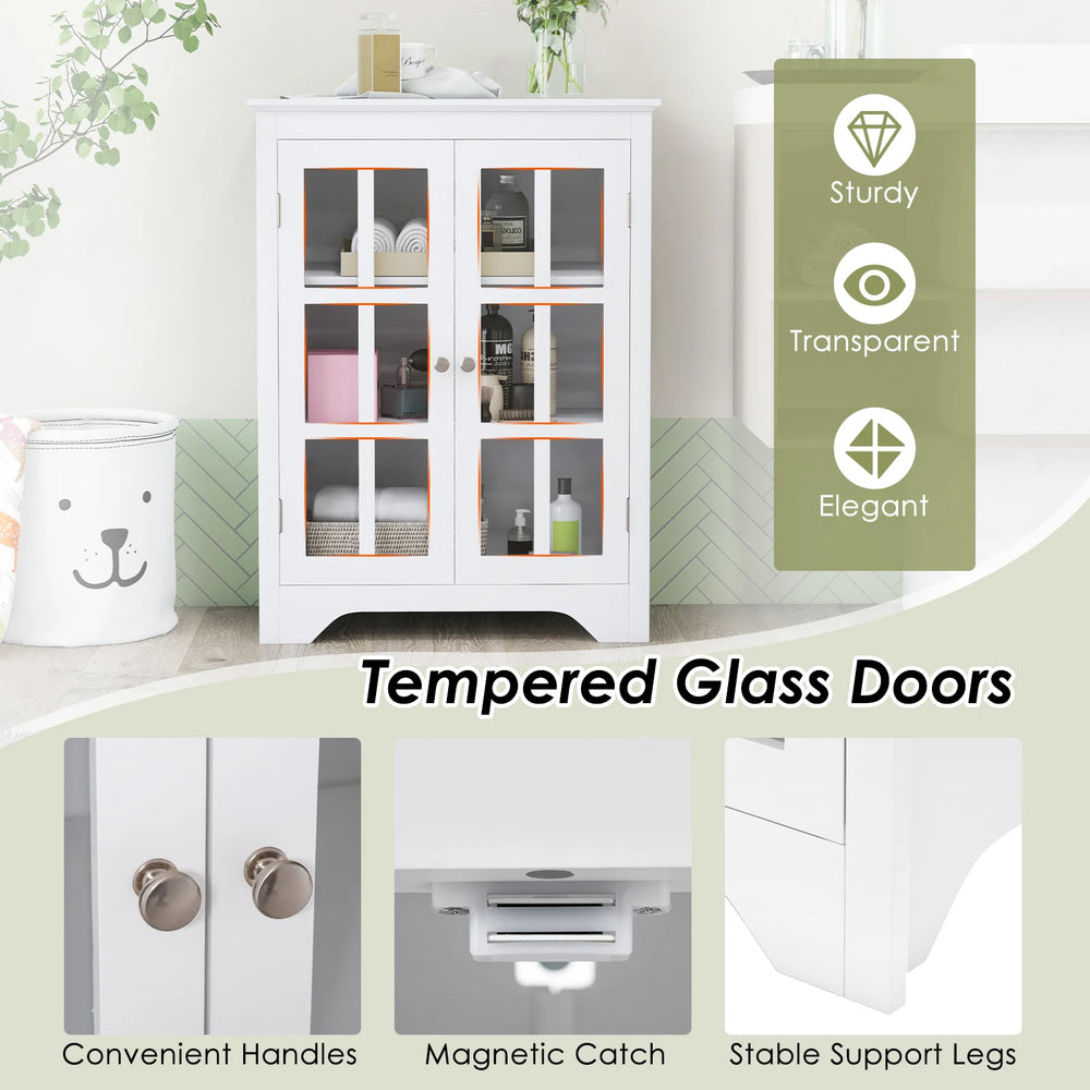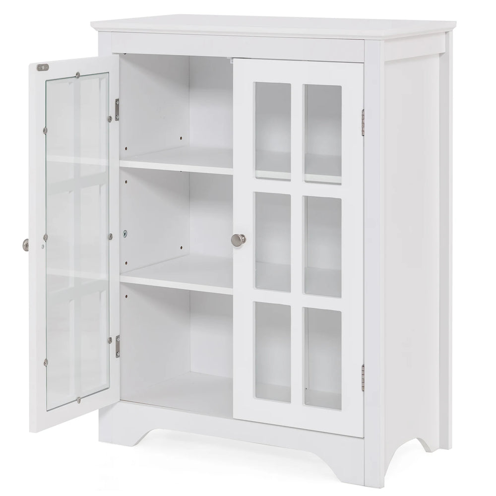 Freestanding Display Storage Cabinet with 2 Glass Doors and Adjustable Shelves-White
