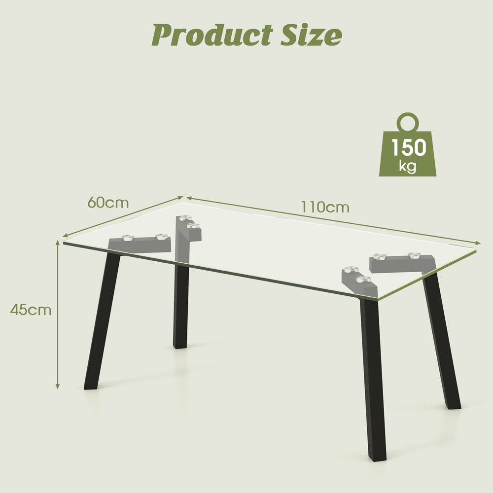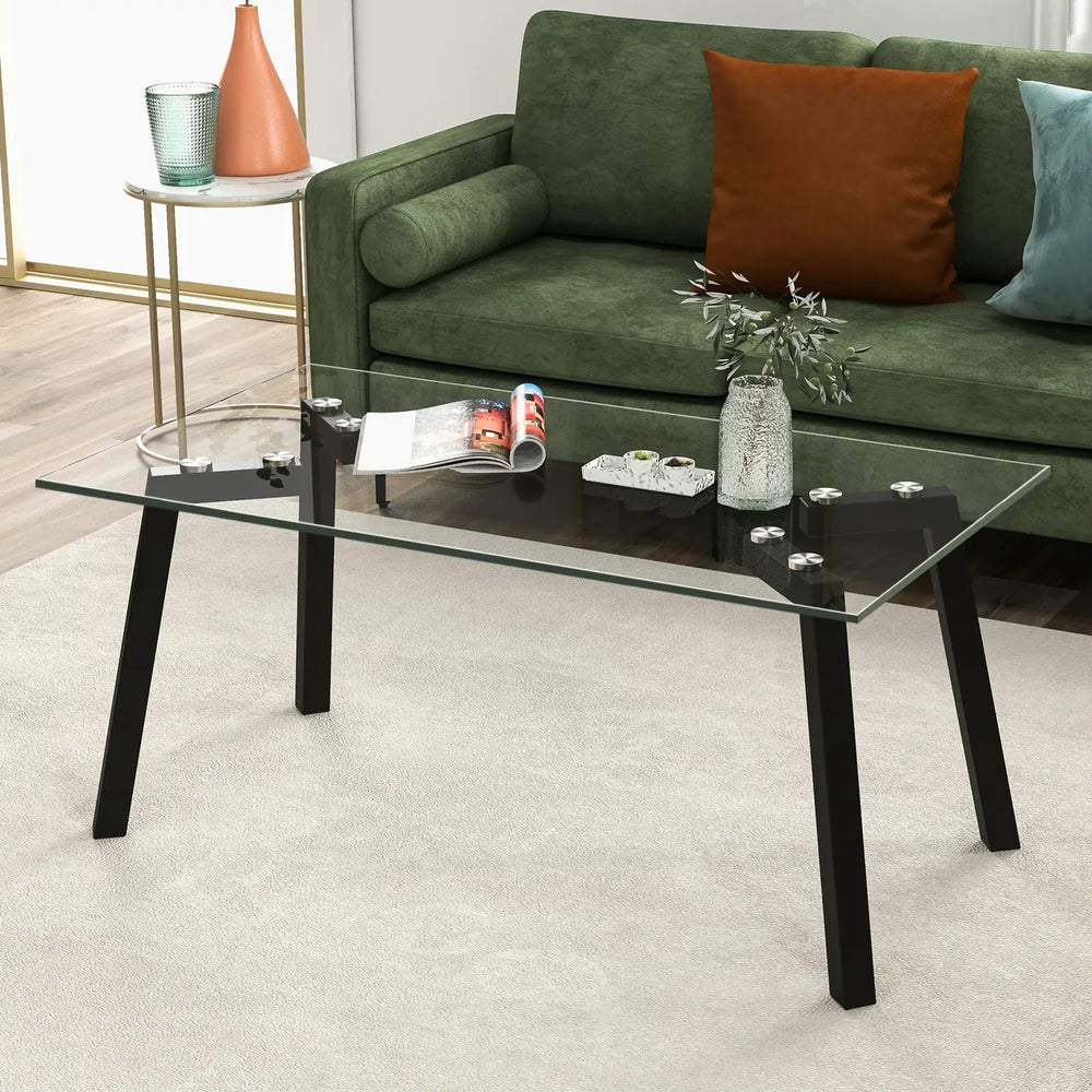 Modern Tempered Glass Coffee Table with Metal Frame for Living Room