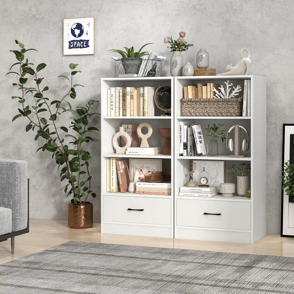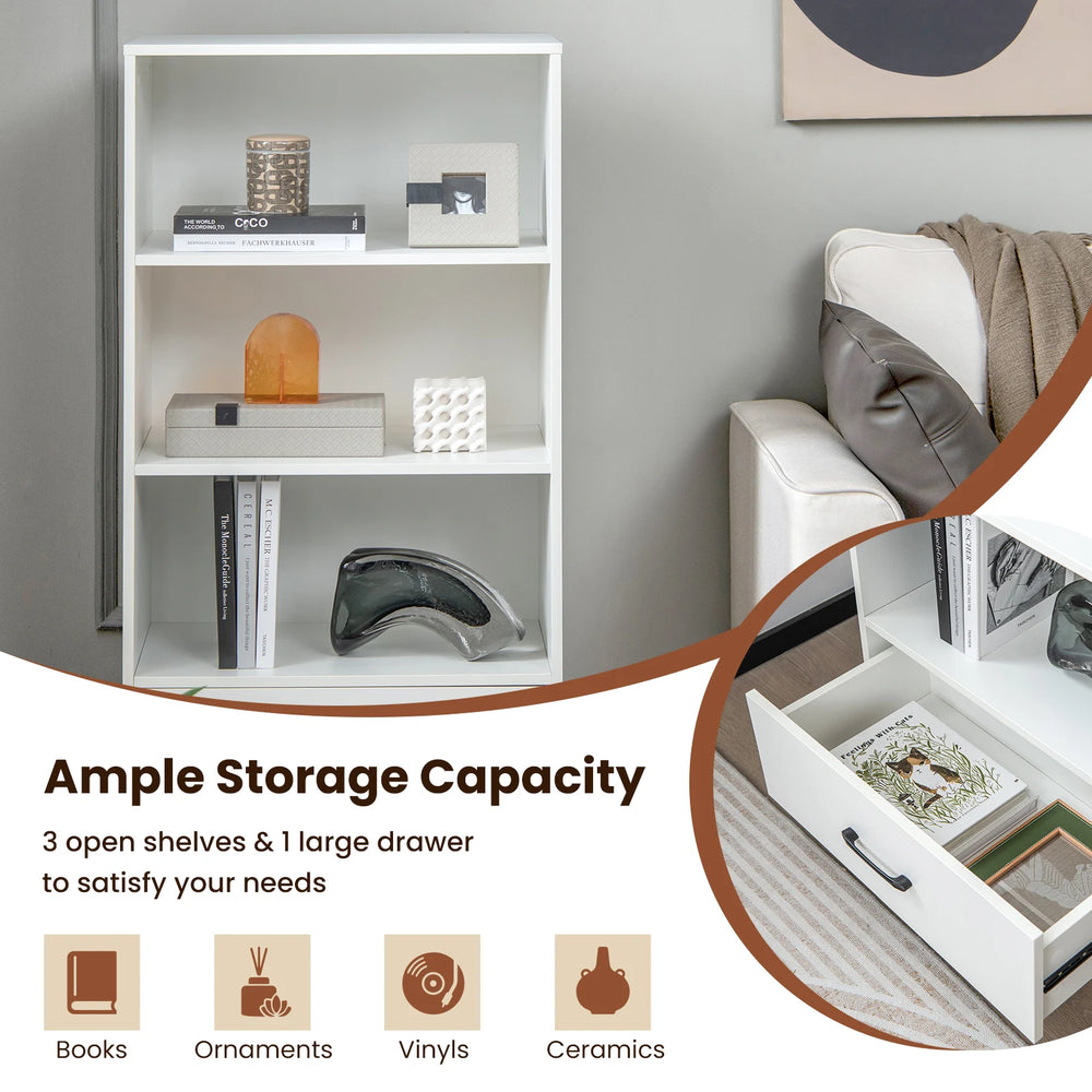 48 Inch Tall 4 Tiers Wood Bookcase with Drawer-White