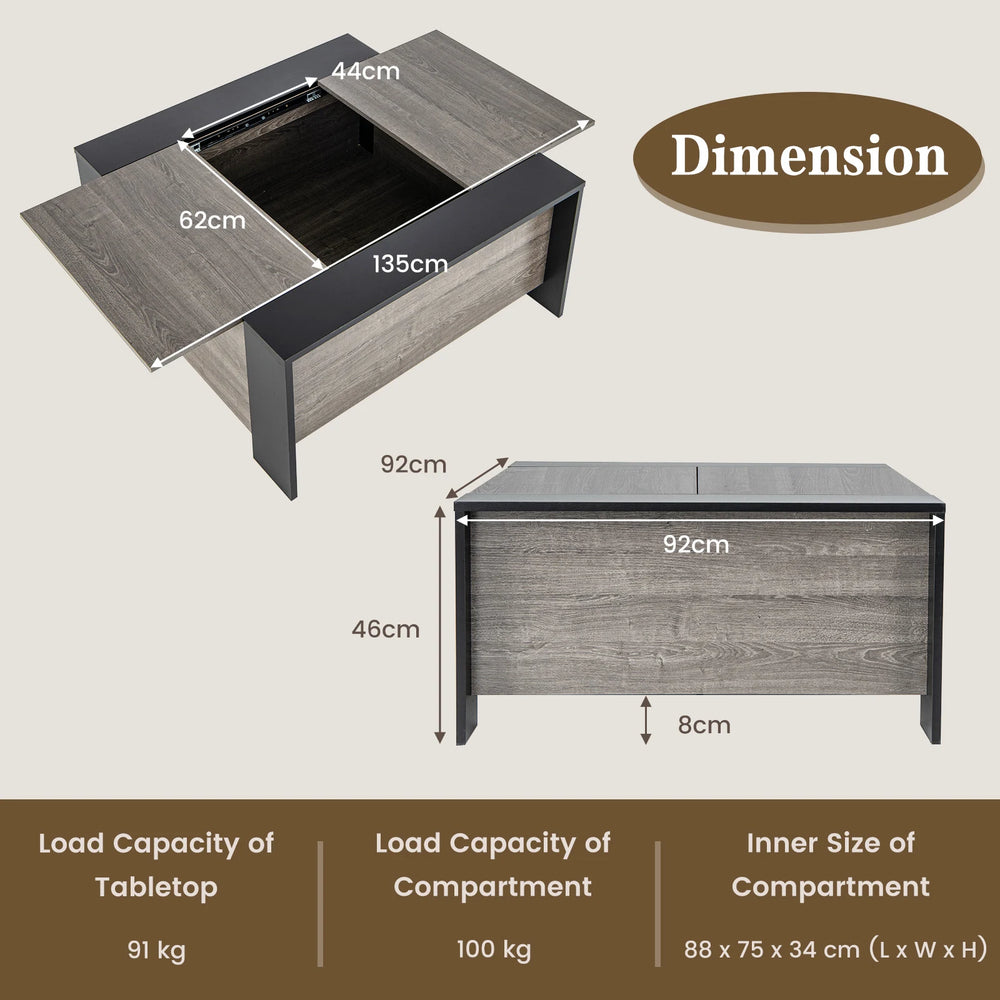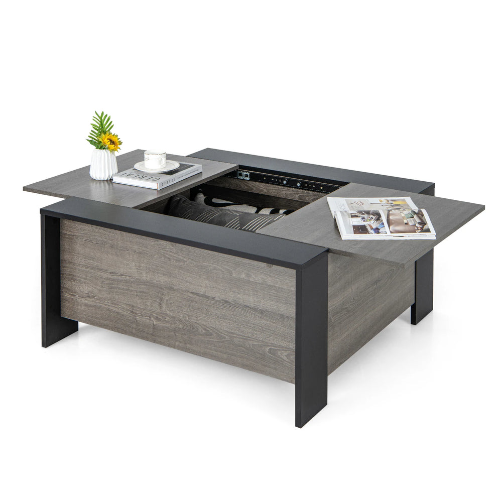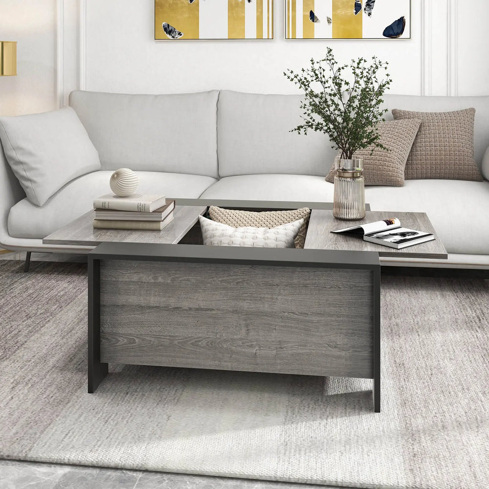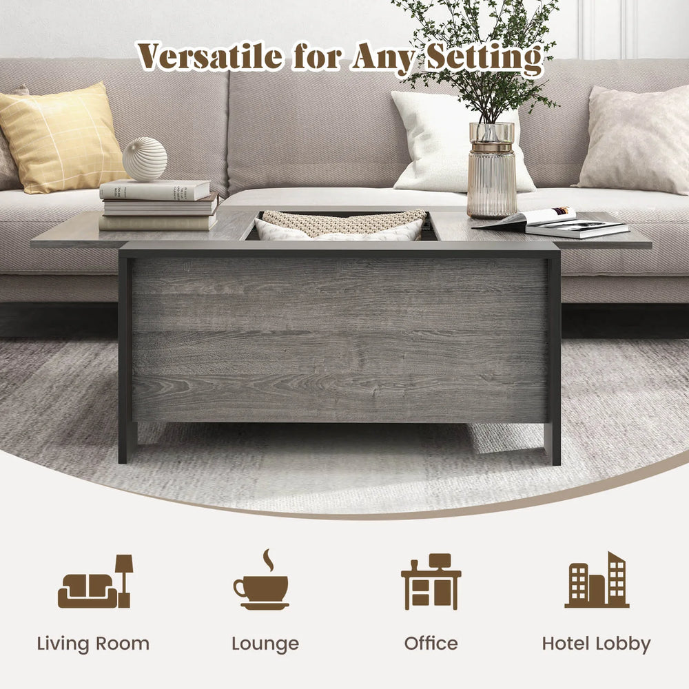 36.5 Inch Coffee Table with Sliding Top and Hidden Compartment-Gray