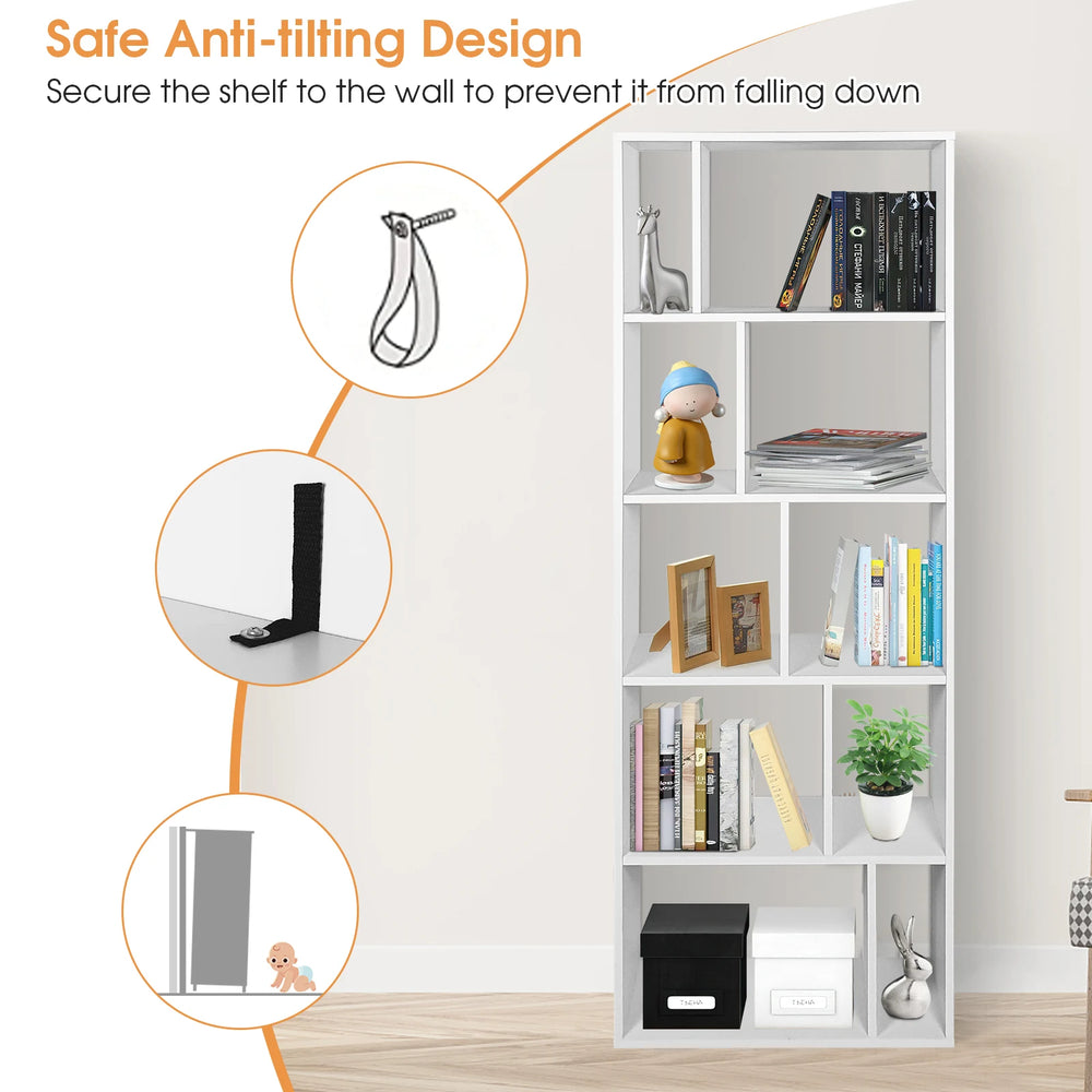 66 Inch Tall 5 Tiers Wood Bookshelf with 10 Open Compartments-White