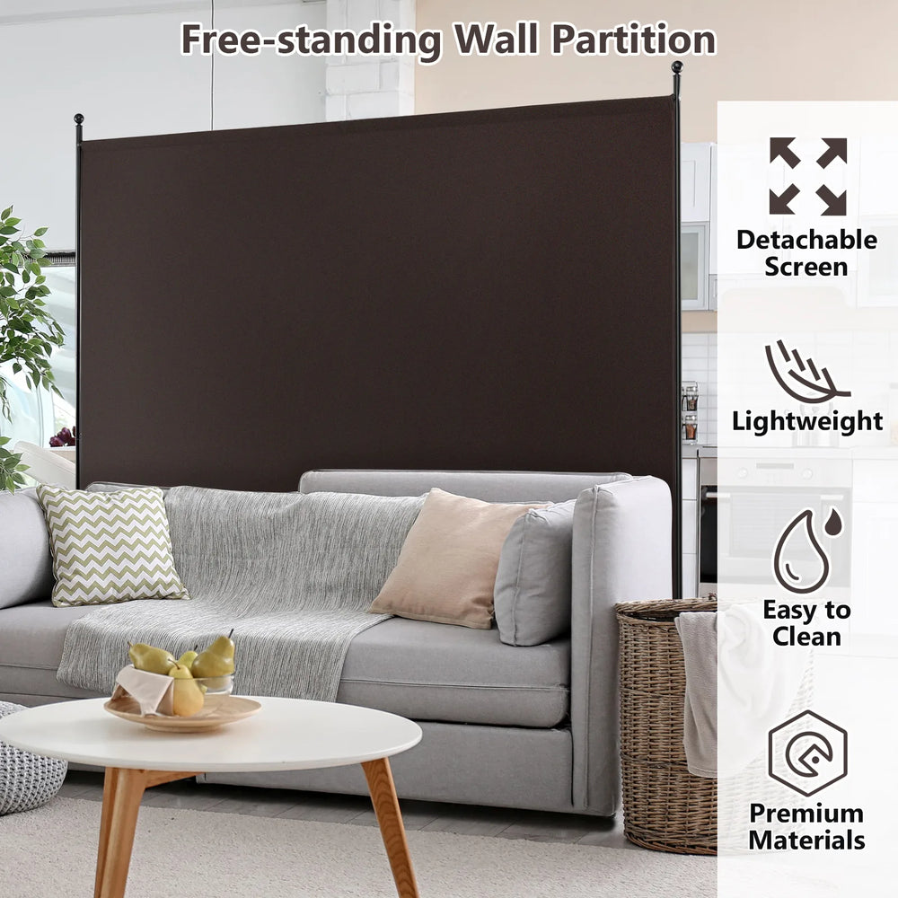6 Feet Single Panel Rolling Room Divider with Smooth Wheels-Brown