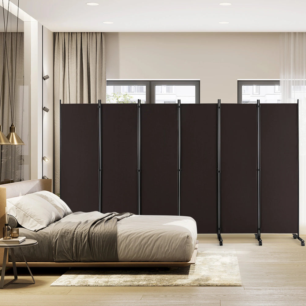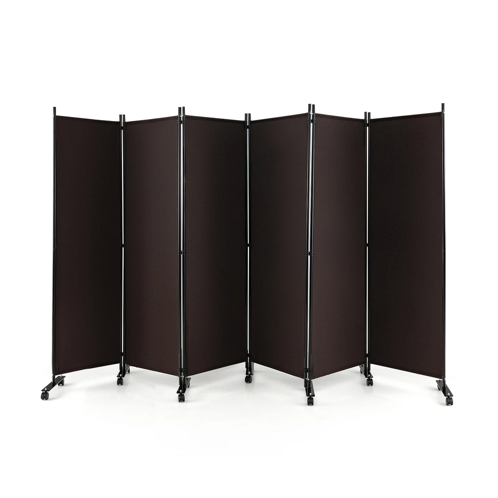6 Panel 6Ft Tall Rolling Room Divider on Wheels-Brown