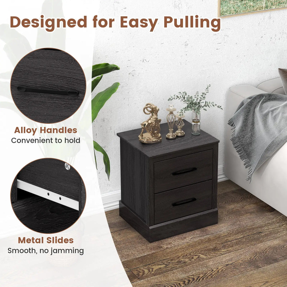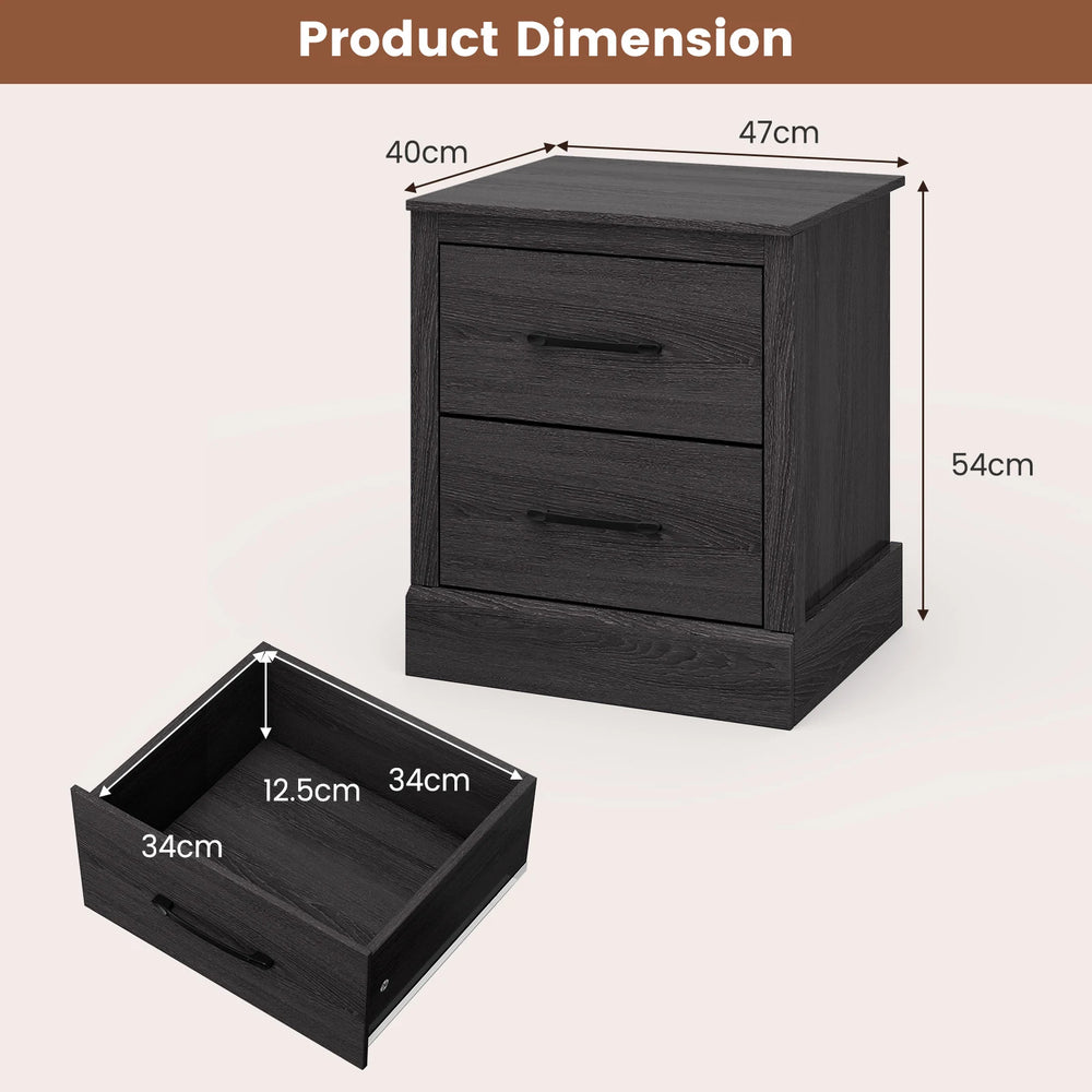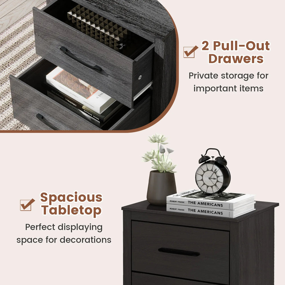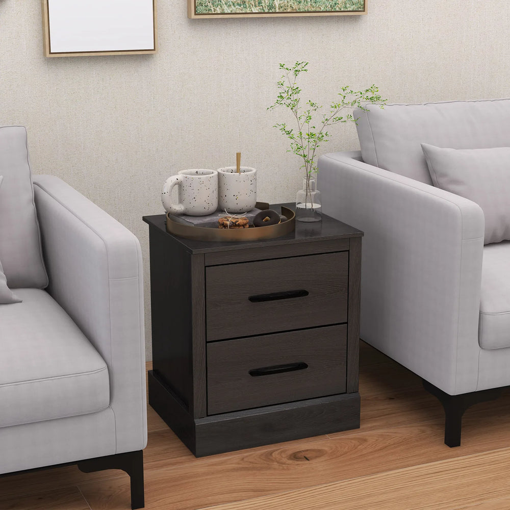 Wood Compact Floor Nightstand with Storage Drawers-Dark Gray