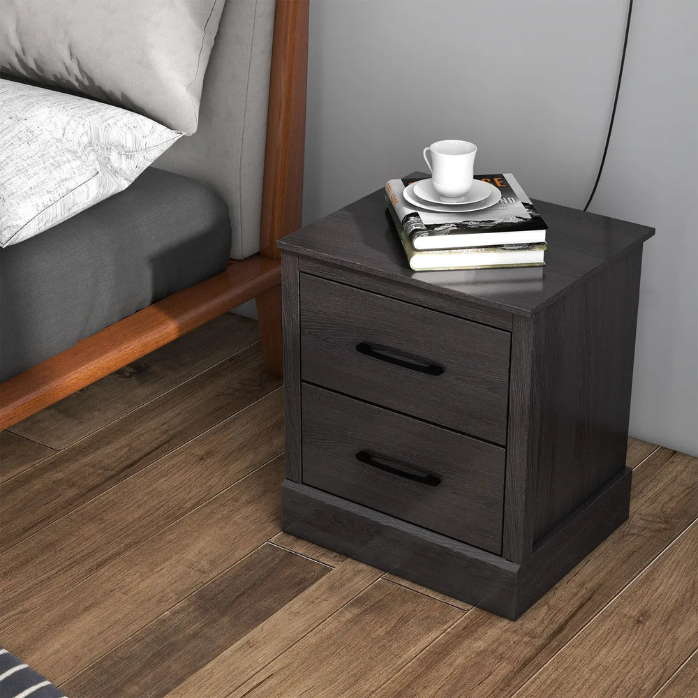 Wood Compact Floor Nightstand with Storage Drawers-Dark Gray is backordered and will ship as soon as it is back in stock.