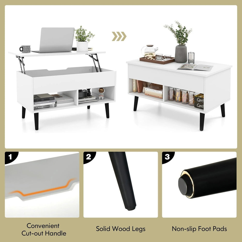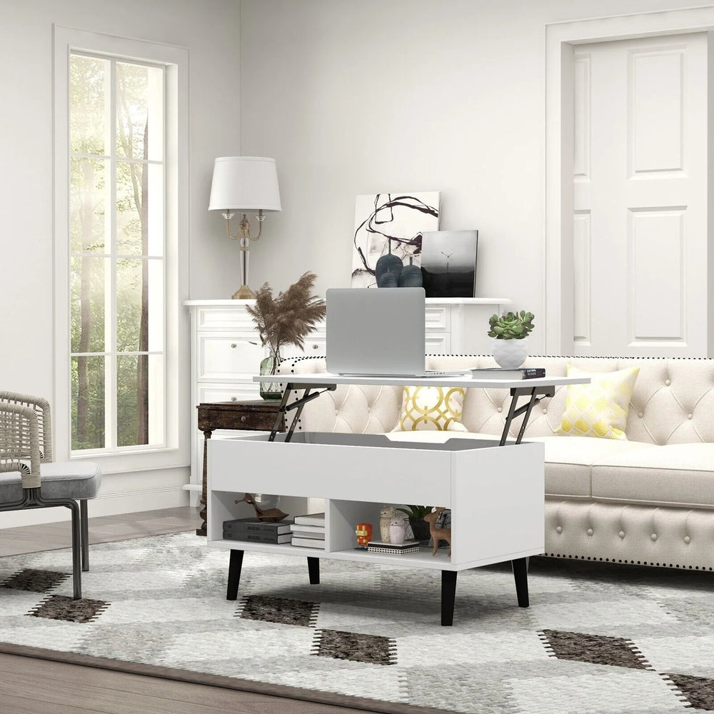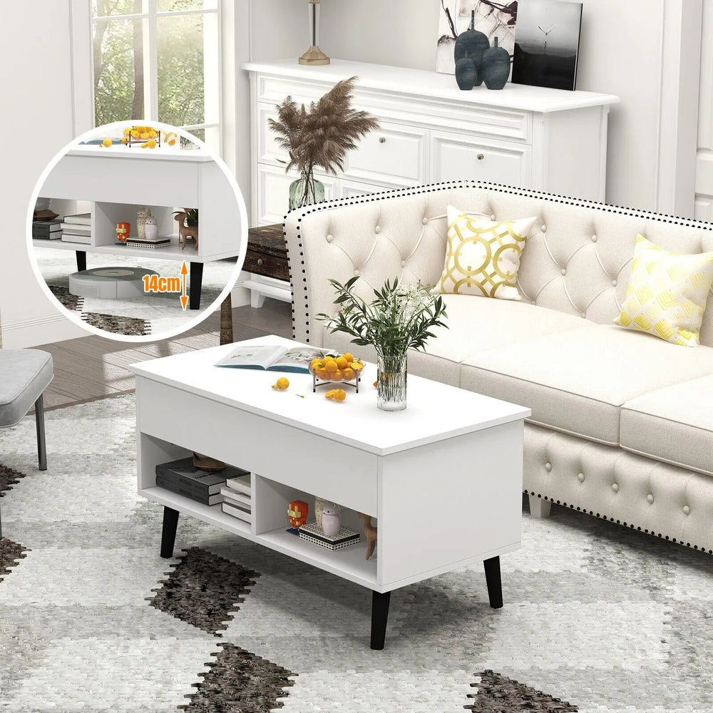 Lift Up Top Coffee Table with Hidden Storage Compartment and Open Shelf-White