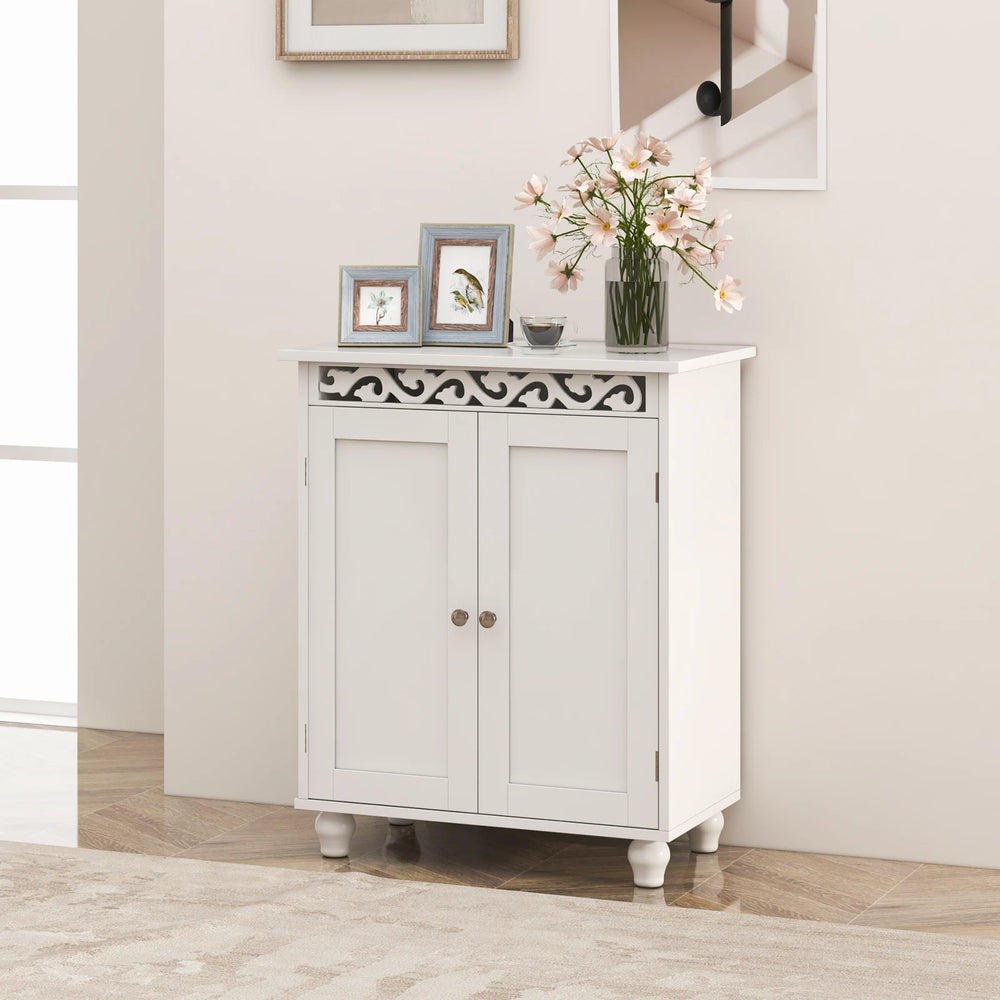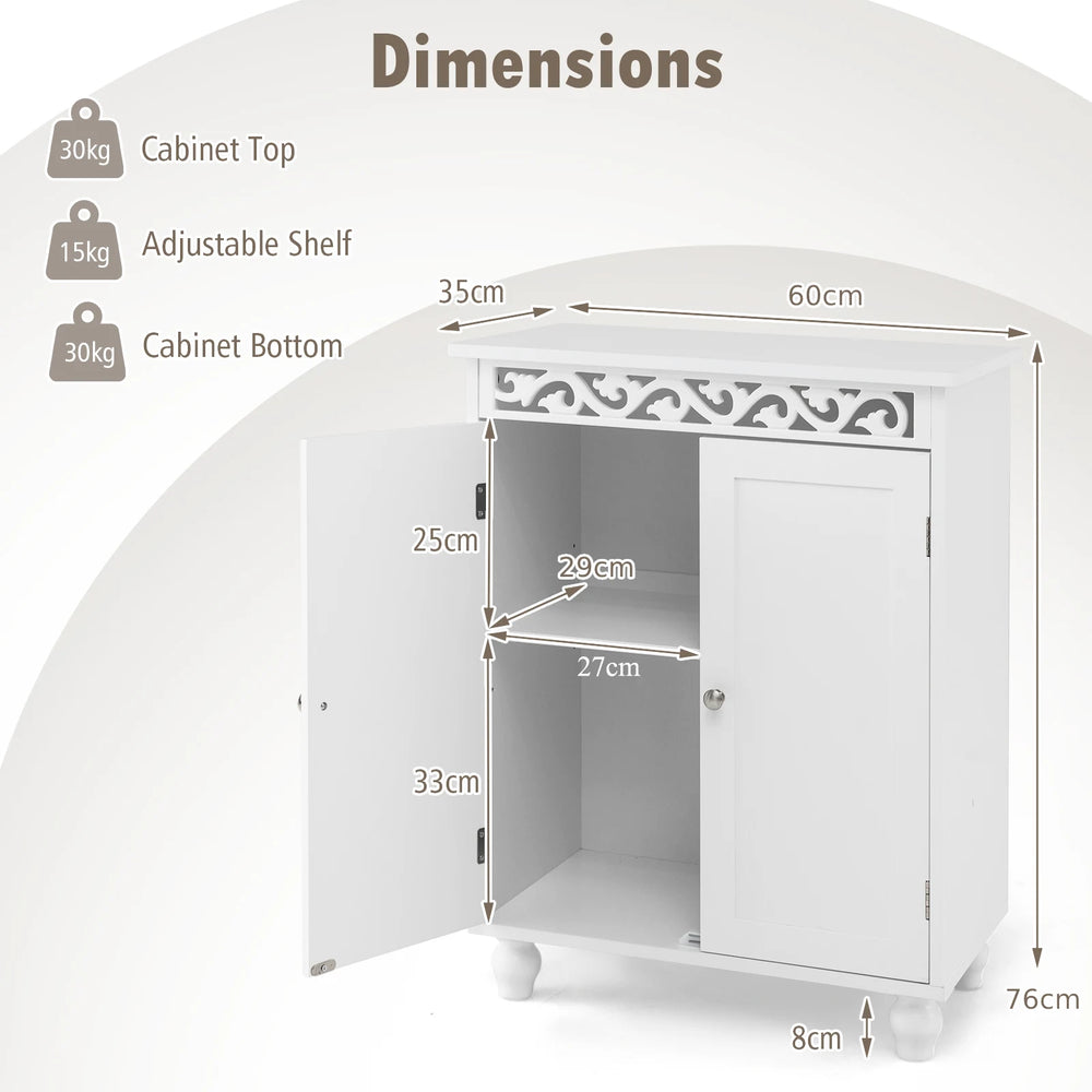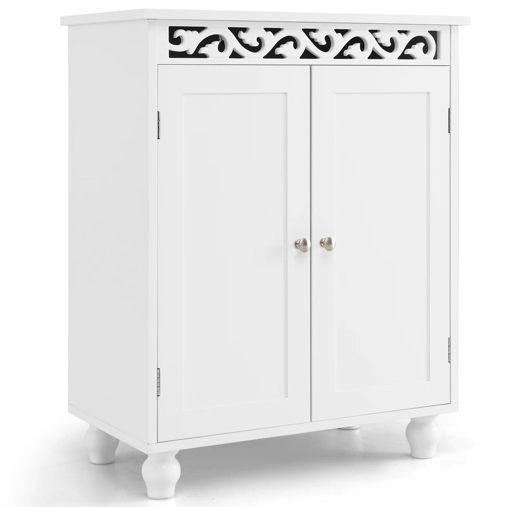 Freestanding Bathroom Cabinet Floor Storage Organizer with Adjustable Shelf and Solid Wood Legs-White