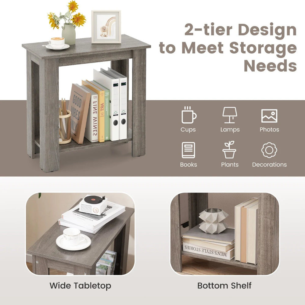 2-Tier End Table with Storage Shelf for Small Spaces-Grey