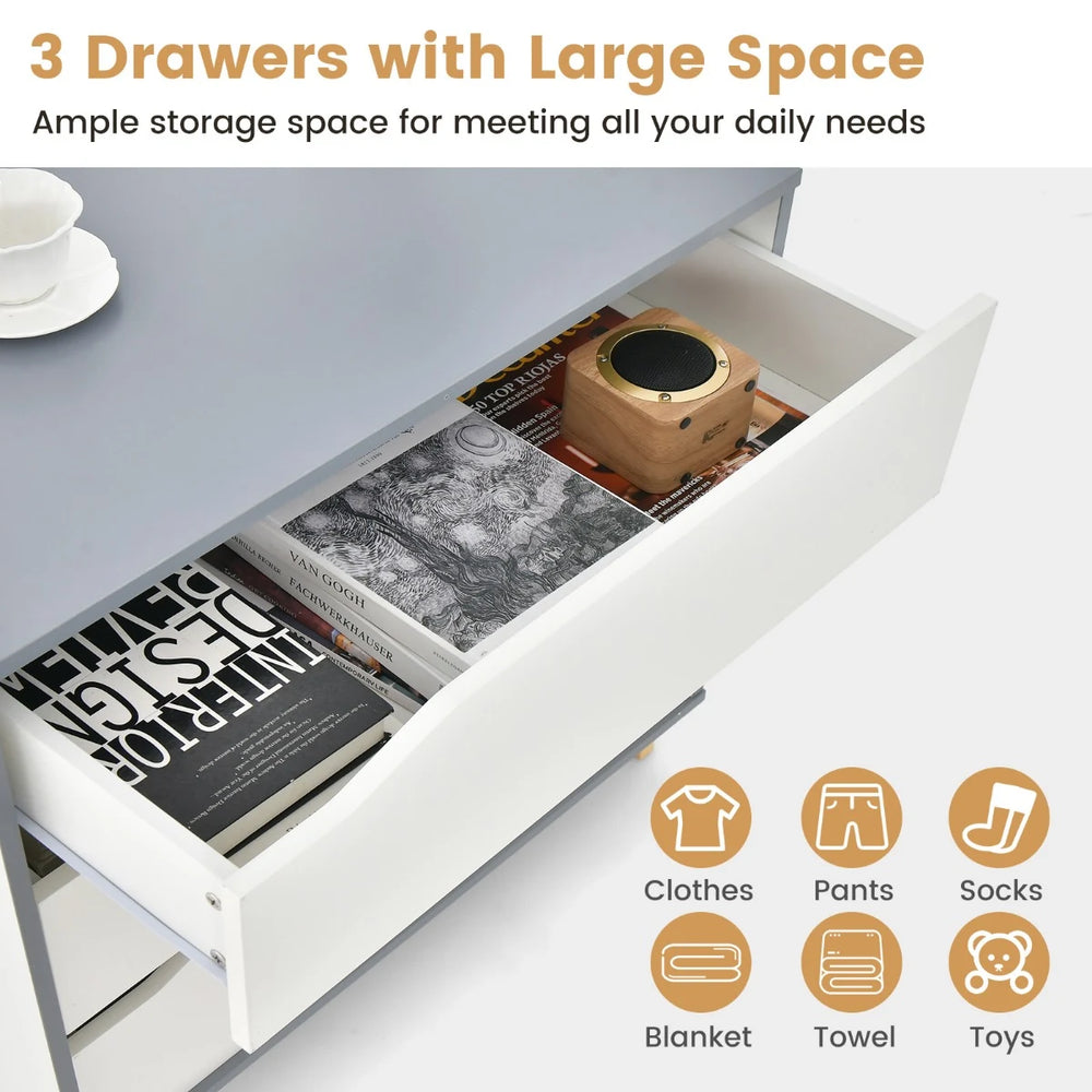 Modern 3 Drawer Chest Dresser with Large Storage Capacity Embedded Handle-White