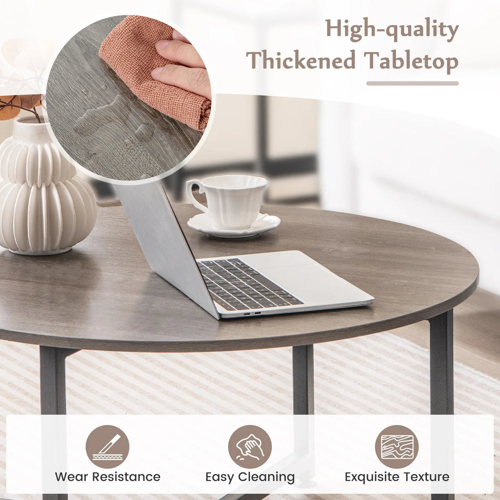 3-Piece Coffee Table Set Round Coffee Table and 2PCS Square End Tables-Gray