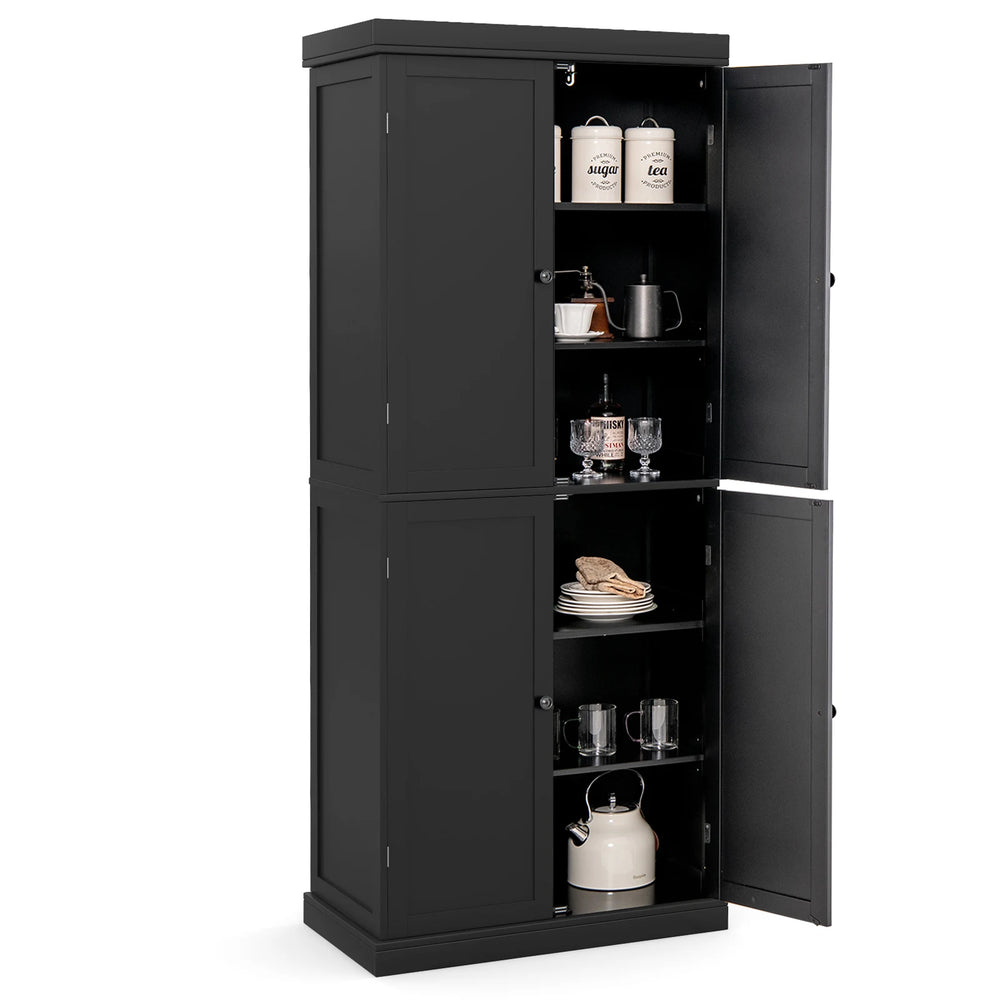 72.5 Tall Buffet Cabinet with 6-Tier Shelves and 4 Doors-Black