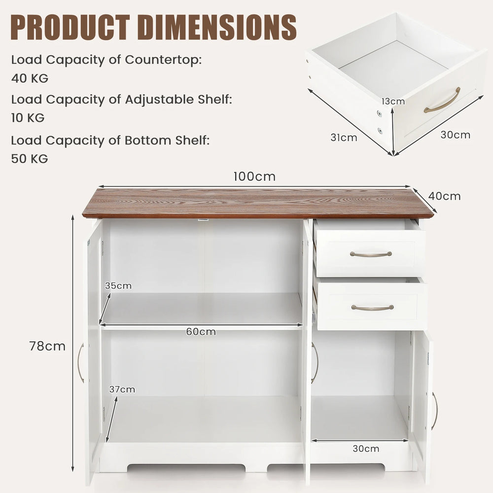 Sideboard with worktop & doors & drawers & adjustable shelves kitchen cabinet white