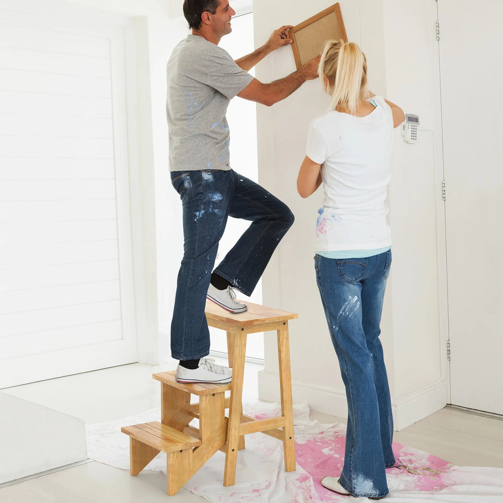 3-in-1 Rubber Wood Step Stool with Convenient Handle-Natural