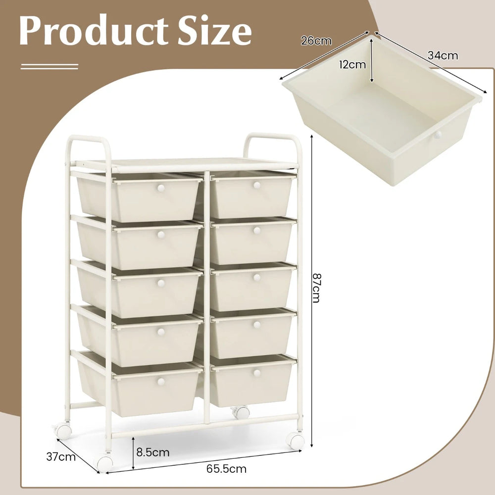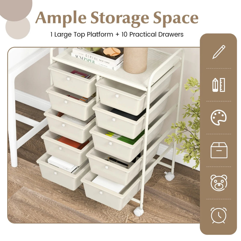 10-Drawer Rolling Storage Cart-White is backordered and will ship as soon as it is back in stock.