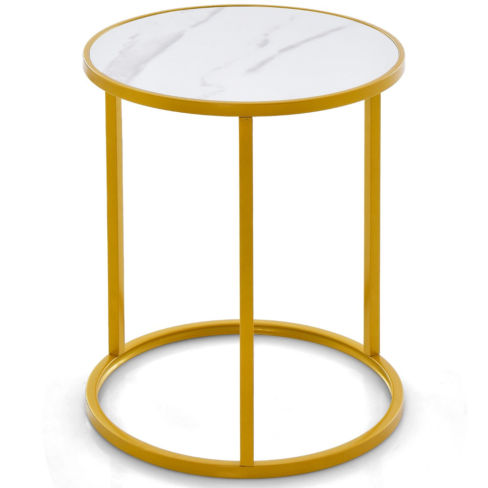 Marble Top Round Side Table 16-Inch End Table with Golden Metal Frame-1 Piece