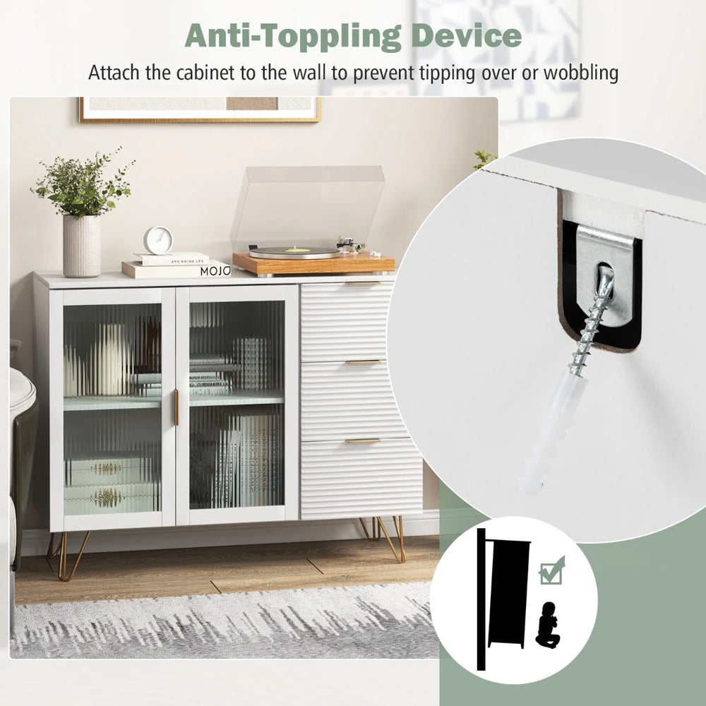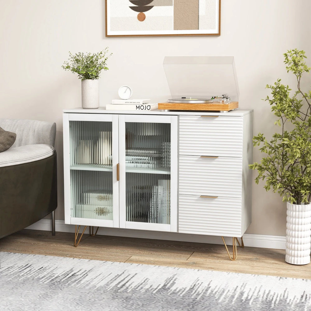 Modern Sideboard Buffet Cabinet with 2 Doors and 3 Drawers for Living Room Dining Room-White