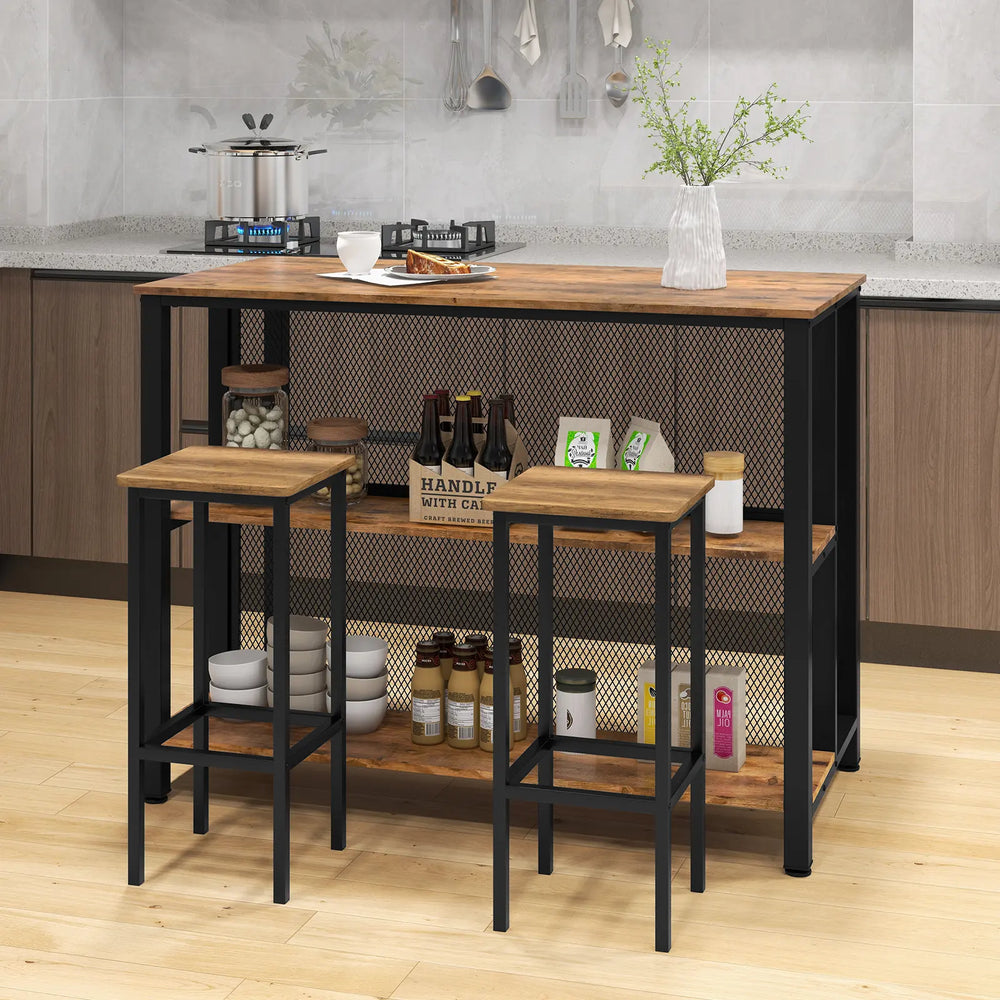 36" 3-Tier Bar Table with Storage Metal Frame Adjustable Foot Pads for Dining Room-Rustic Brown