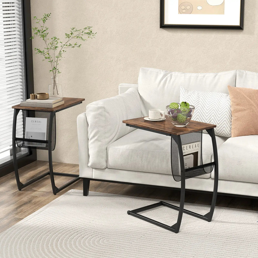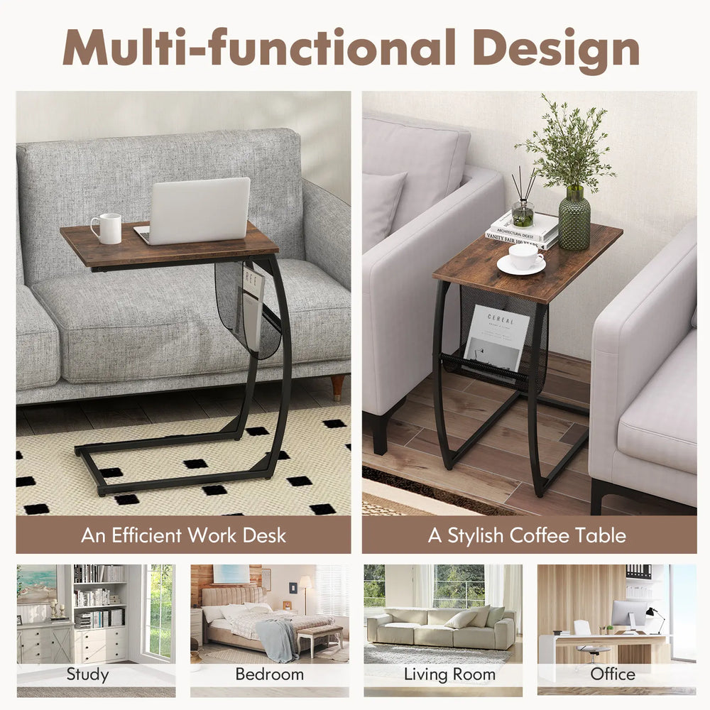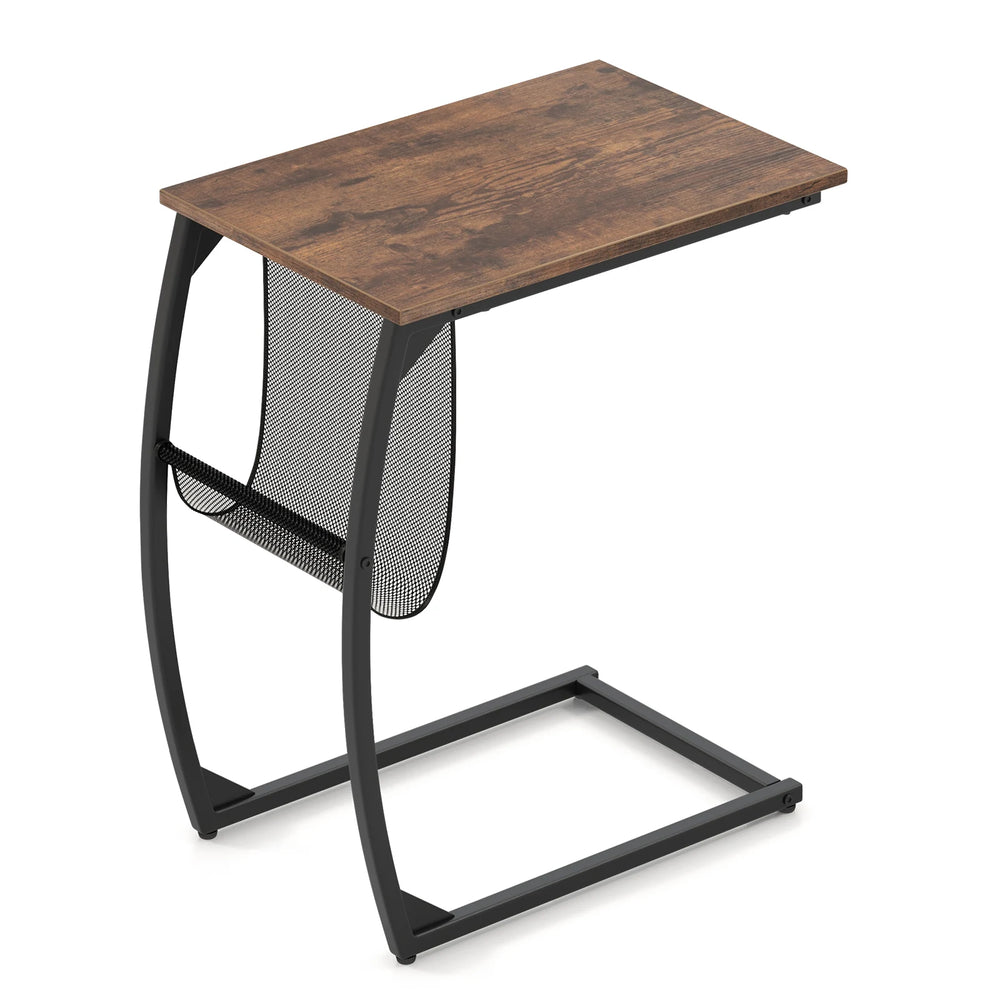 Transform your living space with this innovative sofa side table that makes the most of every inch. The space-saving C-shaped design allows you to effortlessly slide the table under your sofa or bed, making it ideal for small spaces. Featuring 2 storage options, this table maximizes vertical space efficiency with a tabletop perfect for laptops and drinks, while the mesh pocket neatly stores toys or magazines. The sturdy metal frame ensures a solid structure, supported by non-slip foot pads that protect your floors. Whether used as a chic bedside table, practical snack table, or stylish drinks table, this piece will seamlessly adapt to your ever-changing needs. Its modern style brings a contemporary vibe to any setting and blends beautifully with various decor schemes. Add a touch of elegance and functionality to your living room, bedroom, office, or reception area with this versatile and stylish sofa table. Attributes: Space-saving design: Easily slide the base under your sofa or bed to make the most of your living space. The side table features a convenient C-shaped design that fits into small spaces and increases comfort. 2 Storage Options: Maximize the potential of vertical space with the nightstand, designed for maximum efficiency. The tabletop is perfect for resting your laptops and drinks, while the mesh pocket neatly stores toys or magazines. Sturdy Metal Frame: The snack table features a strong, sturdy metal frame that ensures a solid structure. In addition, our side tables are equipped with non-slip foot pads, which not only increase stability but also protect the floor. Versatile Use: The side table can be easily integrated into a variety of environments and meets your ever-changing needs with ease. It is an ideal addition next to your sofa or bed, as a chic drinks table, practical snack table or elegant bedside table. Modern style for any environment: With its stylish design, the sofa table brings a modern atmosphere and harmonizes with any decoration style. Whether in your living room, bedroom, office or reception room, it will become a great eye-catcher. Characteristics: Space-saving C-shaped design optimizes living space Table top is perfect for laptops and drinks Mesh pocket provides neat storage space for toys or magazines Strong, sturdy metal frame for stability Non-slip foot pads protect the floor Modern design enhances any decorating scheme Ideal as a drinks table, snack table or bedside table