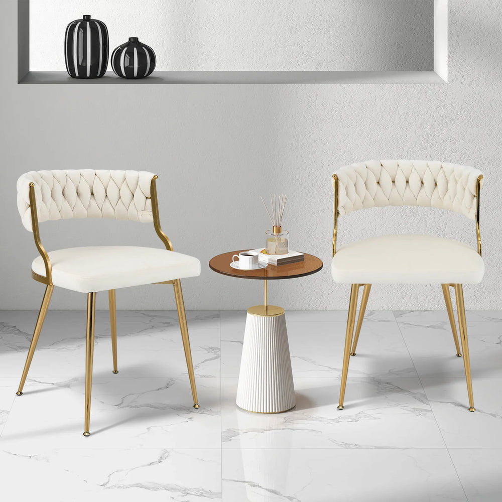 Upholstered Dining Chairs with Golden Metal Legs for Living Room-White