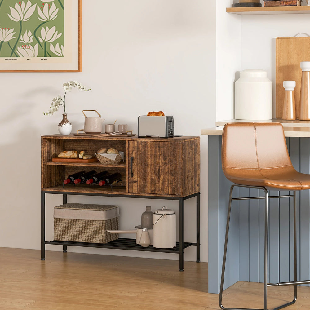 Sideboard Buffet Cabinet with Wine Racks and Storage Shelves-Rustic Brown