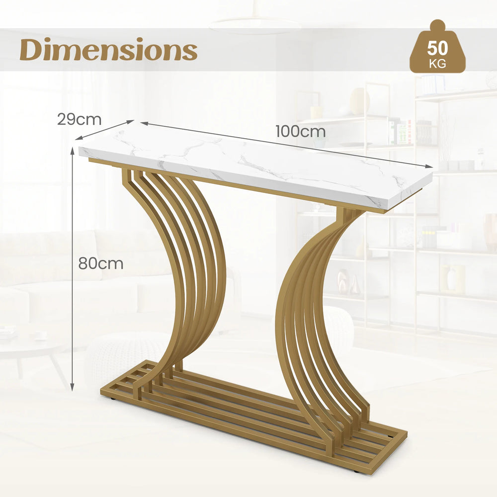 Gold Entryway Table with White Faux Marble Tabletop-White