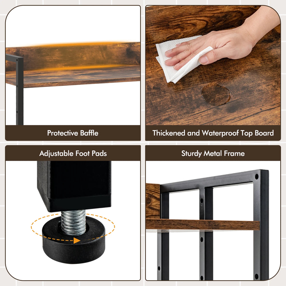 Color Rustic Brown & Black Material Metal, Engineered Wood Overall Dimension 27.5" x 14" x 32" Dimension of Shelf 26" x 13" Height Between Shelf 12.5" Net Weight 26 lbs Weight Capacity of Top Shelf 110 lbs Weight Capacity of Middle and Bottom Shelf 66 lbs
