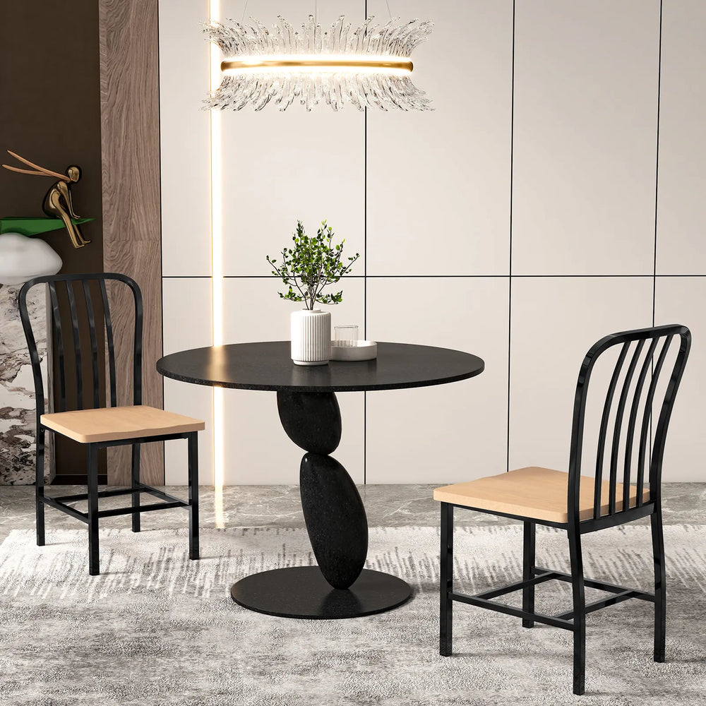 Armless Spindle Back Dining Chair Set of 2 with Ergonomic Seat-Black