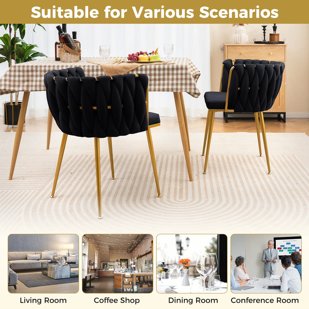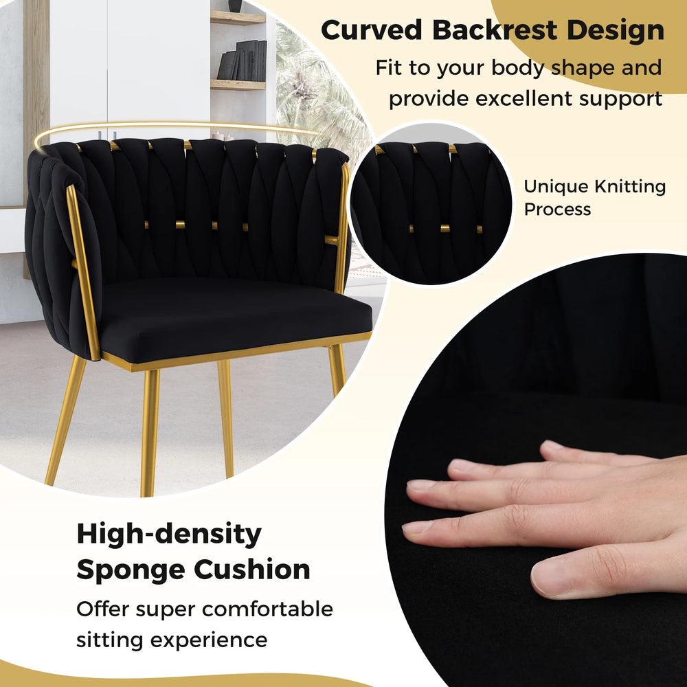 Set of 2 Upholstered Dining Chair w/ Curved Backrest and Metal Tubes-Black