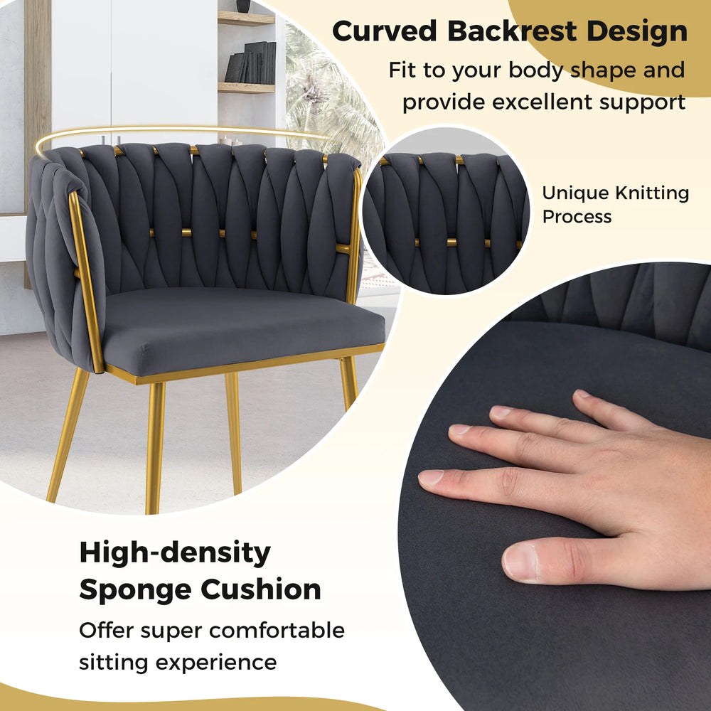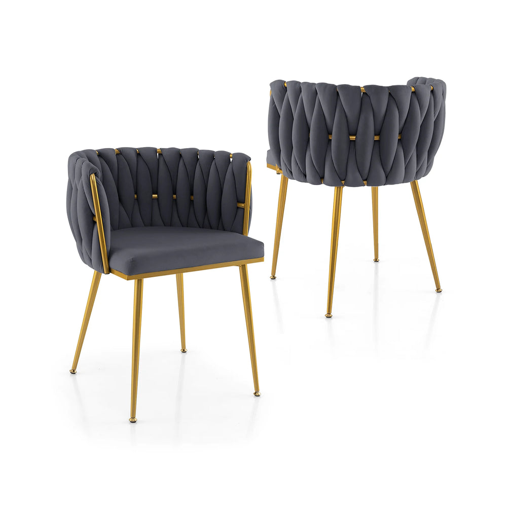 Set of 2 Upholstered Dining Chair w/ Curved Backrest and Metal Tubes-Gray