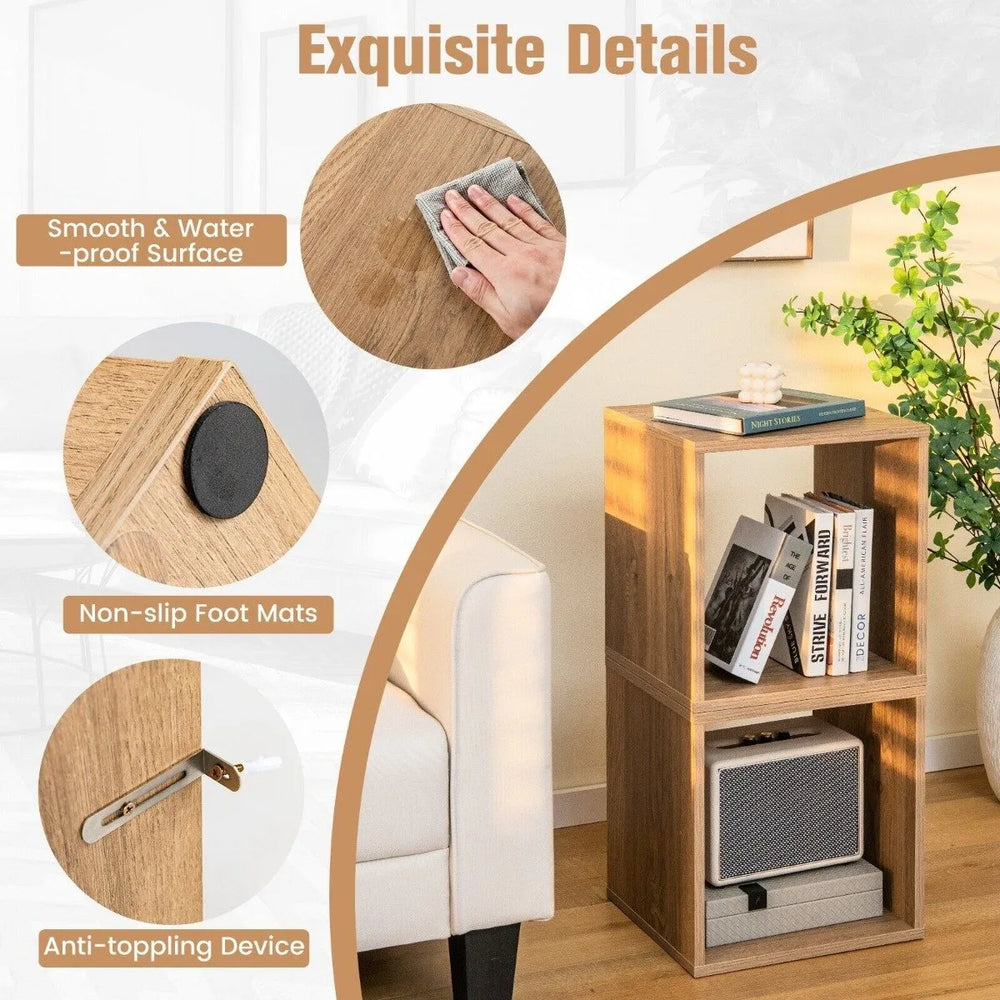 Made of selected materials, the open storage cubes ensure a longer service time and a stable performance. The horizontal or vertical stacking ways endow flexible combinations. Moreover, 2 or more open storage cubes can be stacked based on your requirements. Hence, you can have it in your living room or bedroom for a perfect storage solution. Equipped with an anti-toppling device, each stackable storage cube is safe to sue. Additionally, the open back storage cubes are able to hold a variety of items for you. The anti-slip foot pads can bring extra steadiness and protect the floor from scratches. 2-piece Stackable Design: The decorative cube storage organizers can be stacked vertically or horizontally according to your different. Likewise, you are able to arrange several open storage cubes in a way you like. Therefore, these stackable storage cubes will take little space yet provide you with large storage capacity. Open Storage Space: Featuring an open back, the wooden storage cubes will offer a perfect storage solution. Each open back storage cube can hold a variety of things for you, such as books, tissues, potted plants, ornaments, vinyl, record player and so on. Thus, you can enjoy a tidy and clean room. Sturdy and Secure Design: Crafted from high quality materials, these open back storage cubes promise durability and sturdiness. Whats more, the anti-falling devices can attach the product to the wall firmly, avoiding tipping over or wobbling. And the non-slip foot pads not only enhance stability but also protect the floor. Designed for Versatility: The decorative cube storage organizers have a simple appearance that will coordinate well with other furniture in any room it repents. You can put it in the living room, bedroom, study or entryway. And the wooden stackable storage cubes will impart a natural flair to the space. Easy Assembly and Maintenance: Coming with clear instruction and complete accessories, the decorative storage cubes are simple to put together. Furthermore, the waterproof and smooth surface makes daily cleaning easier with a clean cloth. Size of each cube: 38 x 33 x 38 cm (L x W x H), stacked size: 38 x 33 x 77 cm (L x W x H).