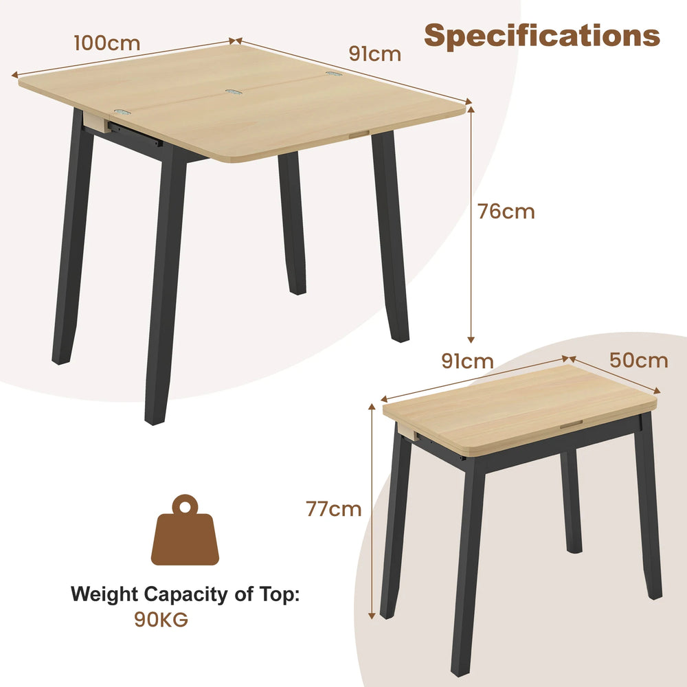 Extendable Dining Table for 4 Folding Kitchen Table with Storage Compartment-Natural