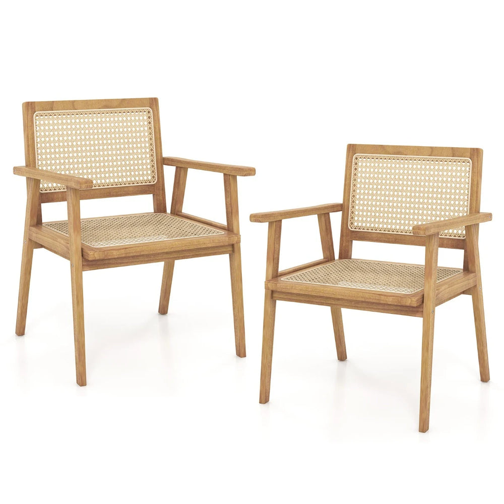 Outdoor Wood Chair with Rattan Seat and Curved Backrest for Backyard Porch Balcony