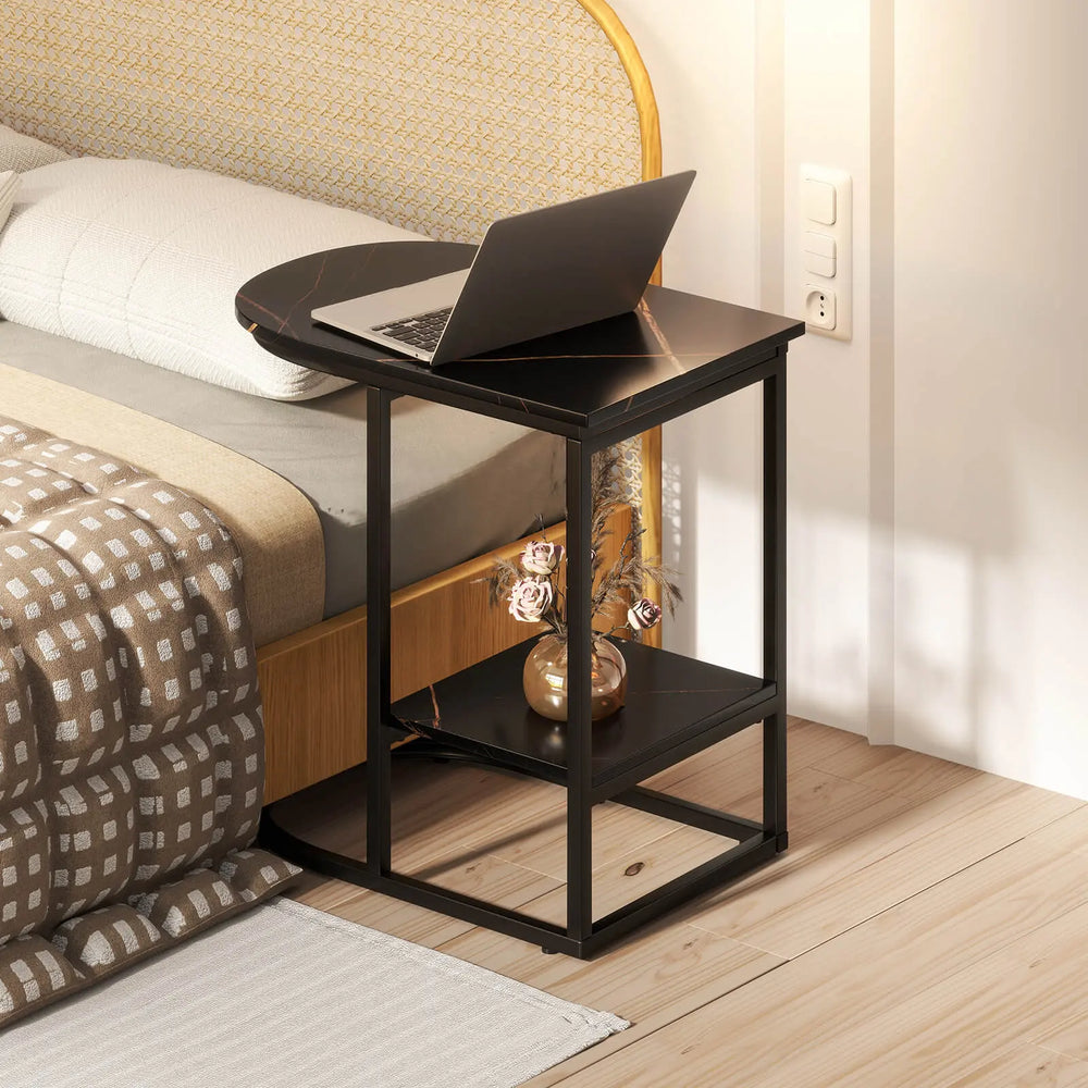 2-Tier C-shaped End Table Modern Sofa Side Table with Metal Frame-Black