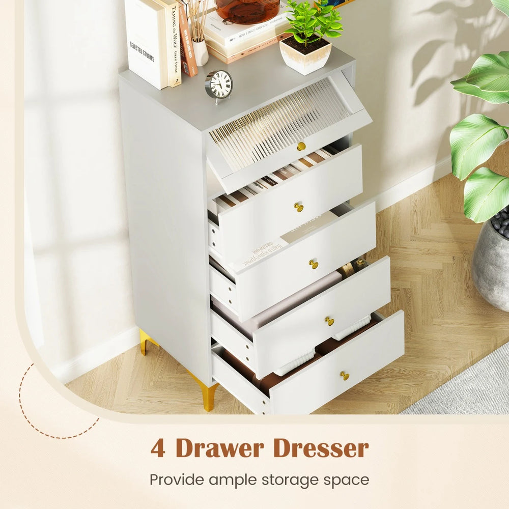 3/4 Drawer Dresser Cabinet with Flip Up Fluted Glass Door-4 Drawers