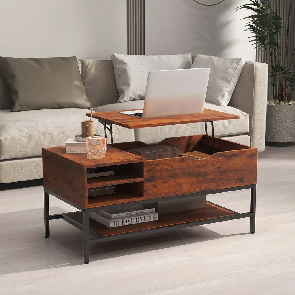 Lift Top Coffee Table with Hidden Compartment and Removable Storage Shelf-Rustic Brown