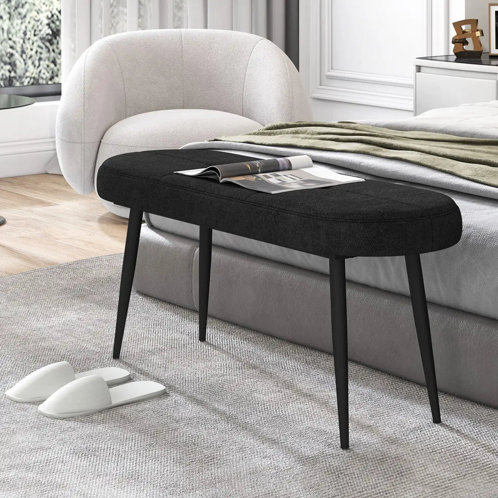 113 cm Ottoman Bench with Sponge Padded Cushion for Entryway Living Room Foyer-Black