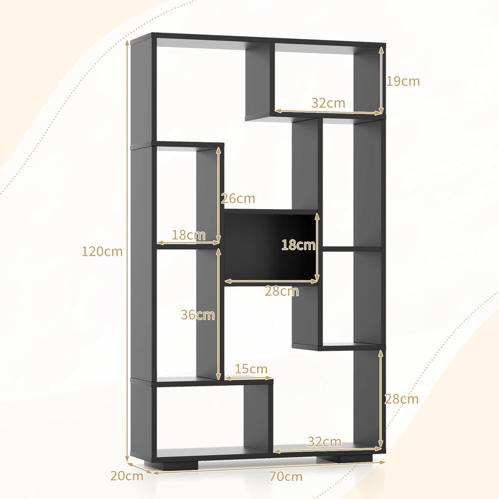 Color: Black/Brown/Natural Material: Engineered Wood Overall Dimensions: 70 x 20 x 120 cm(L x W x H) Weight Capacity of Top: 15 kg Weight Capacity of Shelf: 10 kg Net Weight: 16.5 kg Package Includes: 1 x Bookcase 1 x Instruction