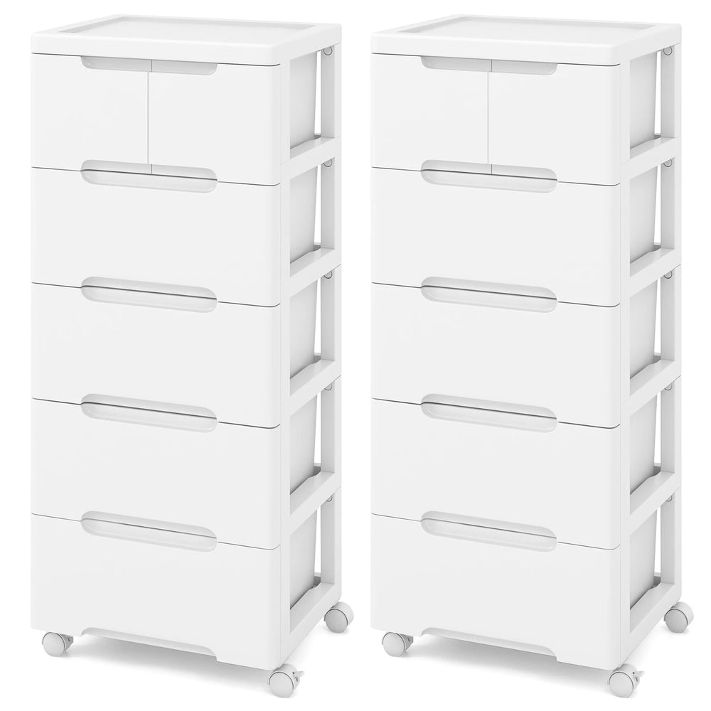 Color: White Material: PP Inner Size of Small Drawer: 11” x 6.5” x 6”/28 x 16 x 15 cm (L x W x H) Inner Size of Big Drawer: 11” x 14” x 6”/28 x 35 x 15 cm (L x W x H) Height off the Ground: 2.5”/5.5 cm Load Capacity of Cabinet Top: 22 lbs/10 kg Load Capacity of Each Small Drawer: 5.5 lbs/2.5 kg Load Capacity of Each Big Drawer: 11 lbs/5 kg 5 Drawers Overall Dimensions: 16” x 13” x 31”/40 x 32 x 79 cm (L x W x H) Net Weight: 11 lbs/5 kg 6 Drawers Overall Dimensions: 16” x 13” x 38”/40 x 32 x 96 cm (L x W x H) Net Weight: 13.5 lbs/6 kg 7 Drawers Overall Dimensions: 16” x 13” x 45”/40 x 32 x 114 cm (L x W x H) Net Weight: 15.5 lbs/7 kg Package Includes: 1 x Rolling Storage Cabinet 1 x User Guide