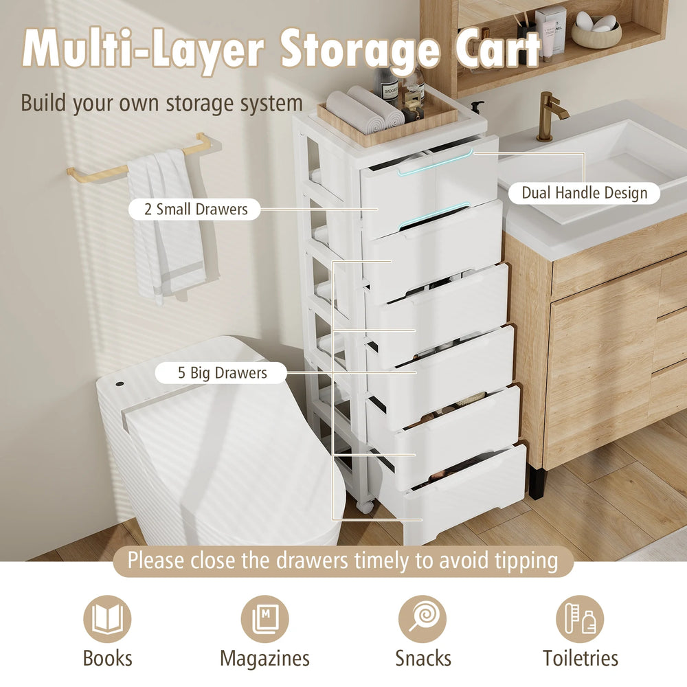 Rolling Storage Cabinet with Universal Wheels and 5/6/7 Drawers-7-Drawer