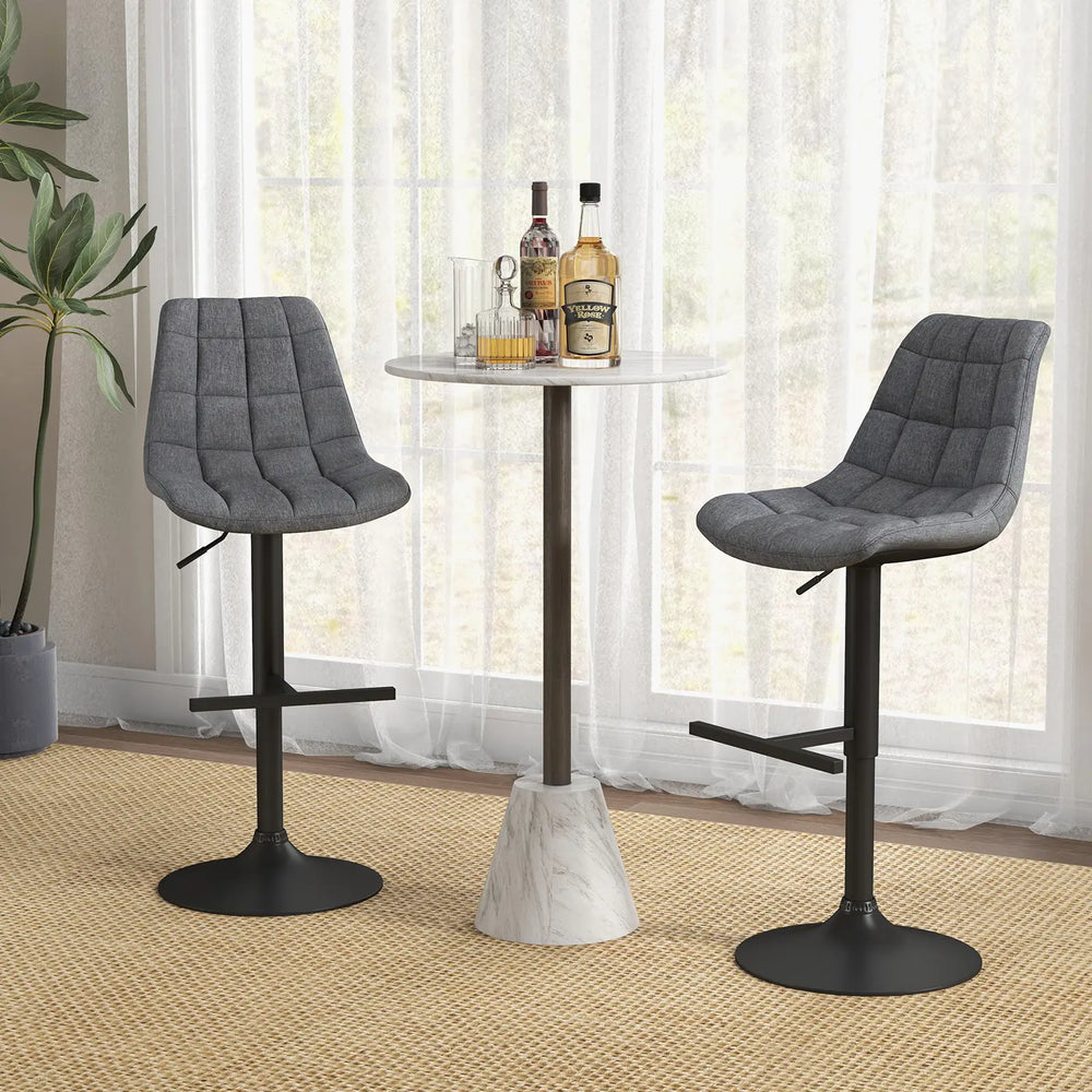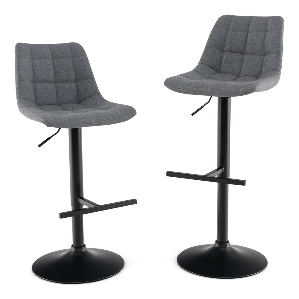 Upholstered Height Adjustable Bar Stools Set of 2 with Fabric Backrest-Grey