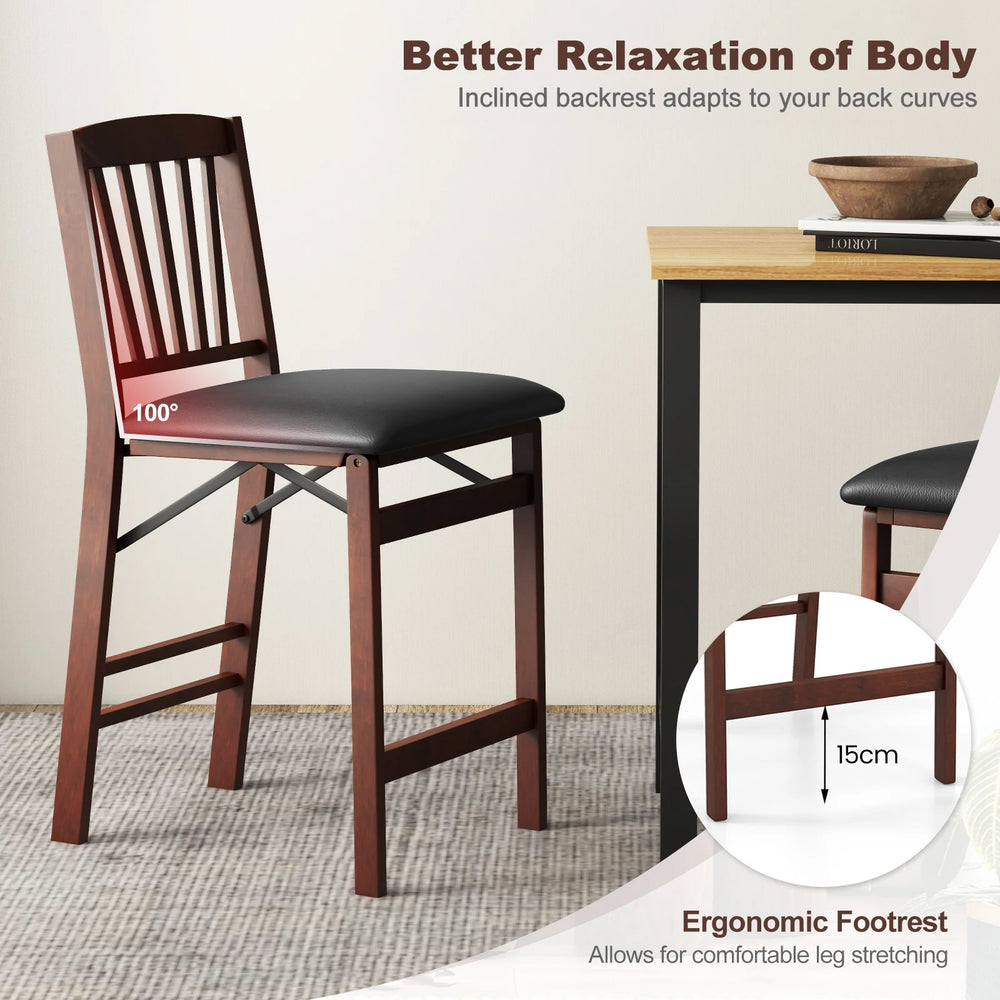 Set of 2 Counter Height Chairs Folding Kitchen Island Stool with Padded Seat-Brown